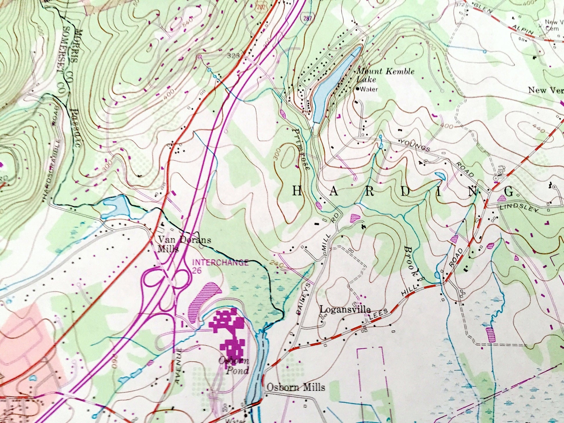 Beautiful, antique map of Bernardsville, New Jersey and surrounding Somerset and Morris County areas. This is an authentic 1954 edition, 1984 print from the U.S. Geological Survey and NOT a computer reproduction.