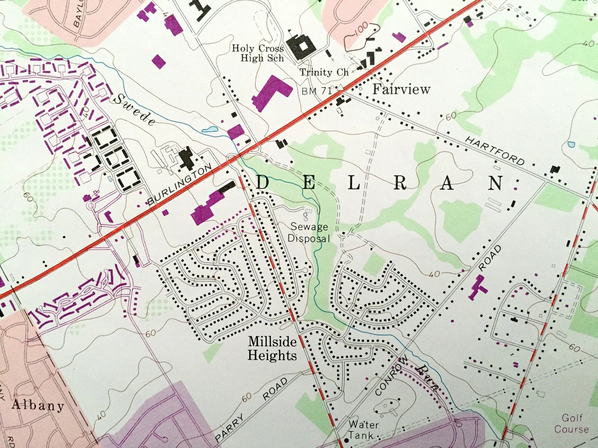 See what Burlington County of New Jersey and Philadelphia and Bucks Counties of Pennsylvania looked like over 50 years ago. Lots of intricate details and geological contours. Map even has little squares for every house that existed at the time. The USGS cartographers were very thorough back then!