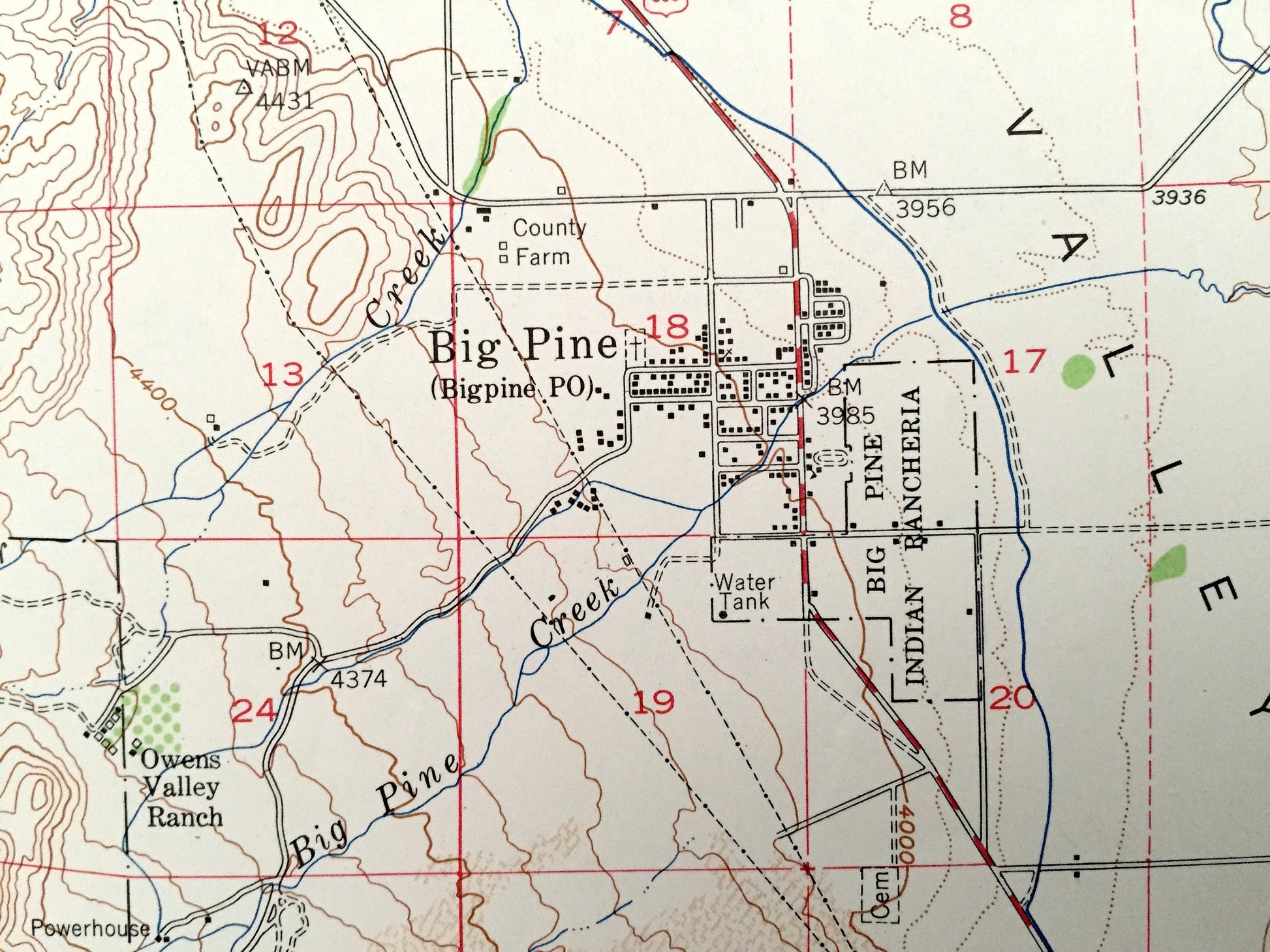 Antique Big Pine, California 1950 US Geological Survey Topographic Map – Inyo National Forest, Kings Canyon Park, Fresno County Owens Valley