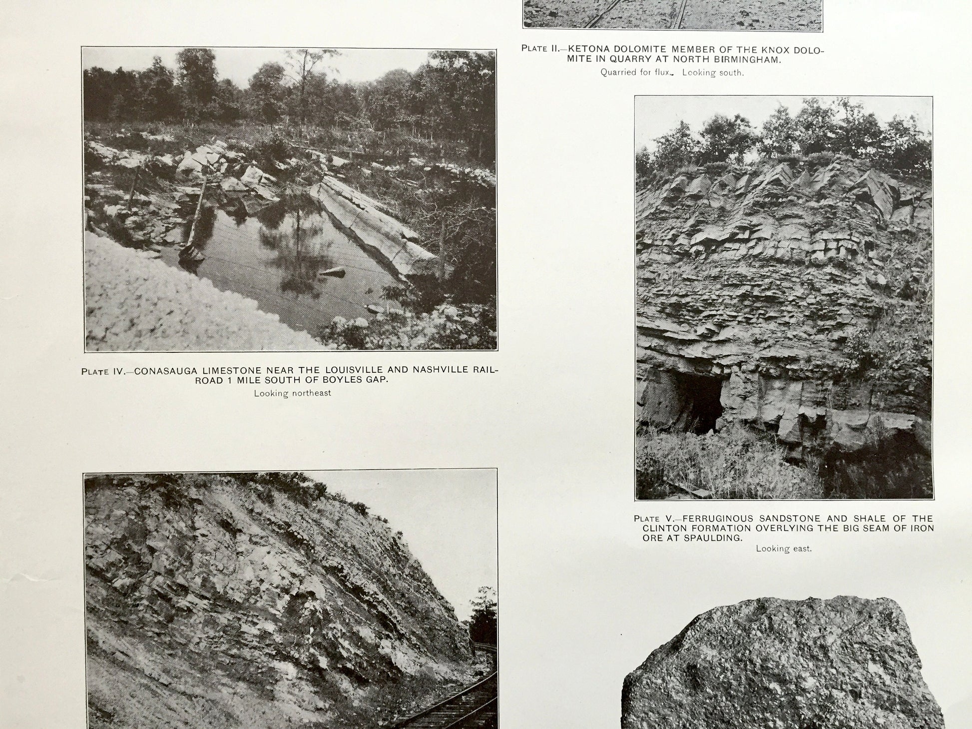 Beautiful, antique illustrations of Birmingham, Alabama and surrounding Jefferson, Meridian, Blount, Shelby, St. Clair, and Cullman County areas. This is an authentic 1904 edition, 1910 print from the U.S. Geological Survey and is NOT a computer reproduction. It is from a Geologic Atlas folio.