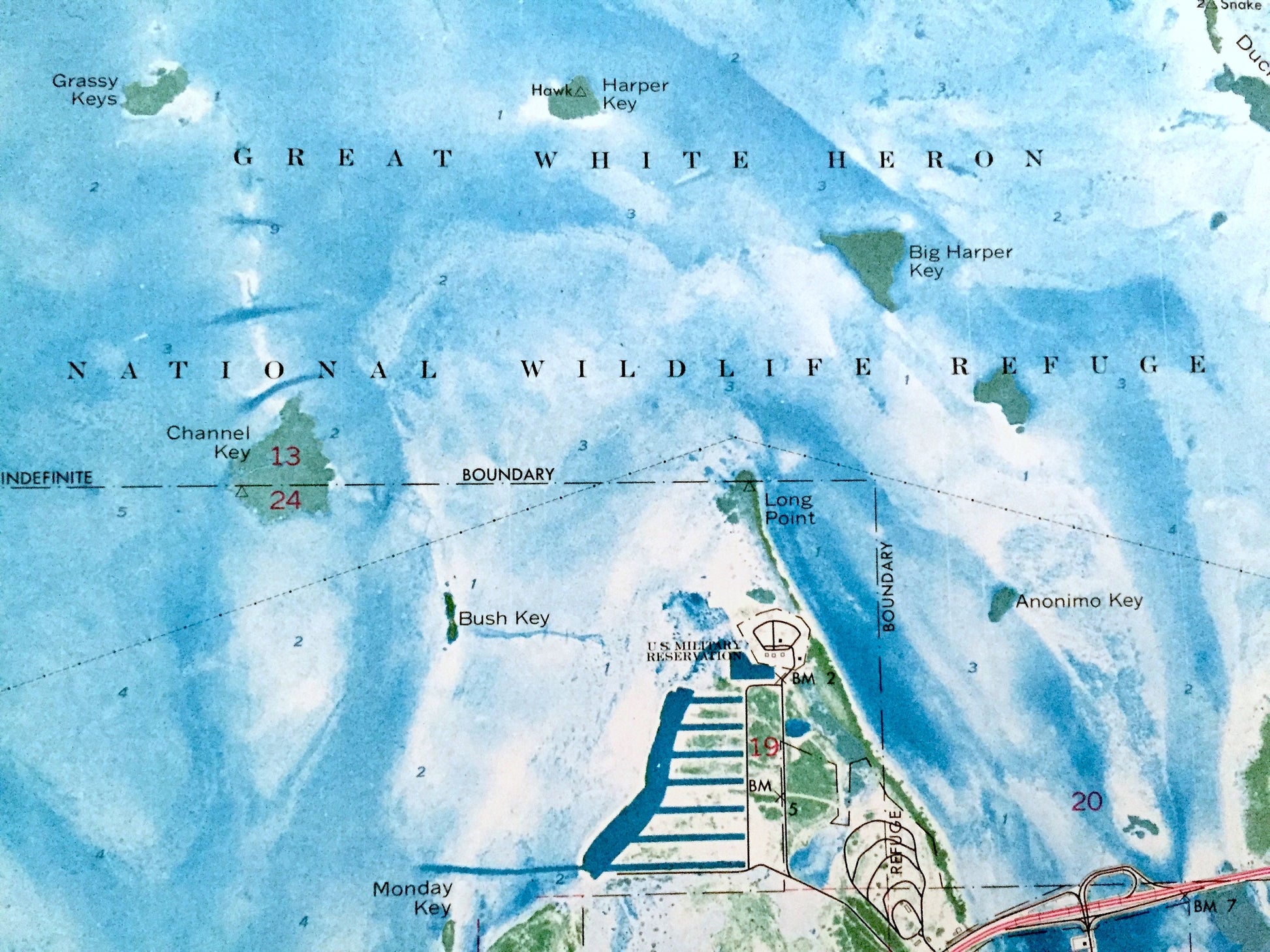 Beautiful, antique orthophoto map of Boca Chica Key, Florida and surrounding Monroe County area. This is an authentic 1971 edition, 1973 print from the U.S. Geological Survey and NOT a computer reproduction.