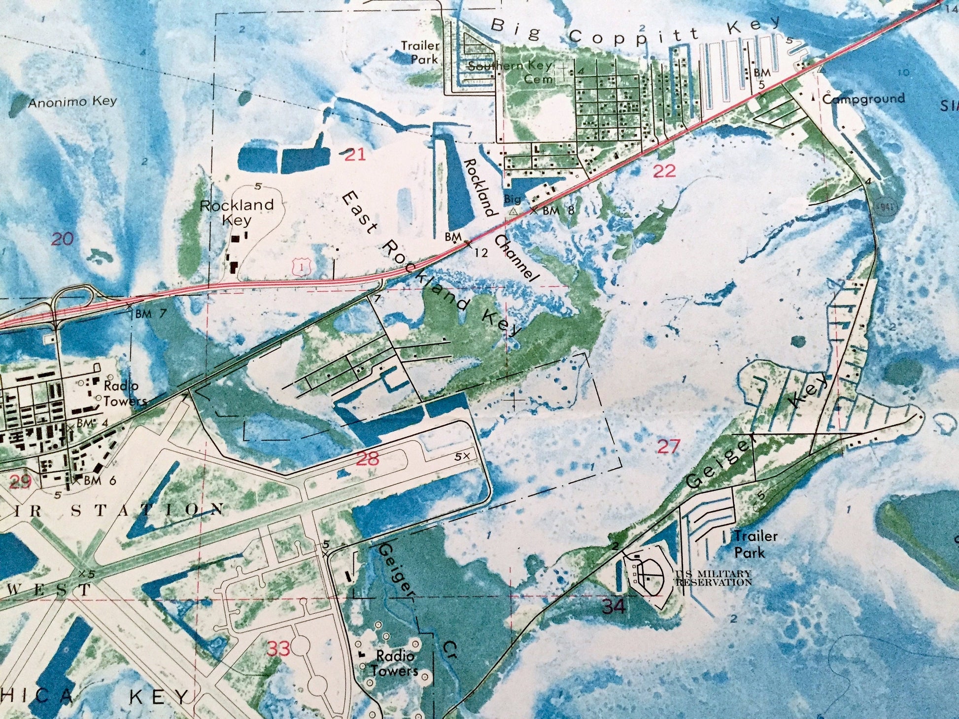 Points of Interest: Monroe County, Florida Keys, Boca Chica Key, Key West, US Naval Air Station Key West, Saddlebunch Keys, Great White Heron National Wildlife Refuge, Racoon Key, Stock Island, Lower Keys Memorial Hospital, Cow Key, Safe Harbor, Key Haven, Intracoastal Waterway, Thompson Island, Boca Chica Channel, East Rockland Key, Big Coppitt Key, Saddlehill Key, Halfmoon Key, Shark Key, OHara Key, Shark Channel, Little Sandy Keys, Bird Key, Pelican Key, Geiger Key, Grassy Keys, Channel Key, Harper Key, Big Harper Key, Duck Key, Hawk Channel, The College of the Florida Keys, Tropical Forest & Botanical Garden, Monday Key, Bush Key, Bird Key, Shark Key, Anonimo Key, Geiger Creek, Geiger Beach, Key West Golf Club, Overseas Highway and lots more creeks, ponds, lakes, islands, houses, schools, churches and roads.