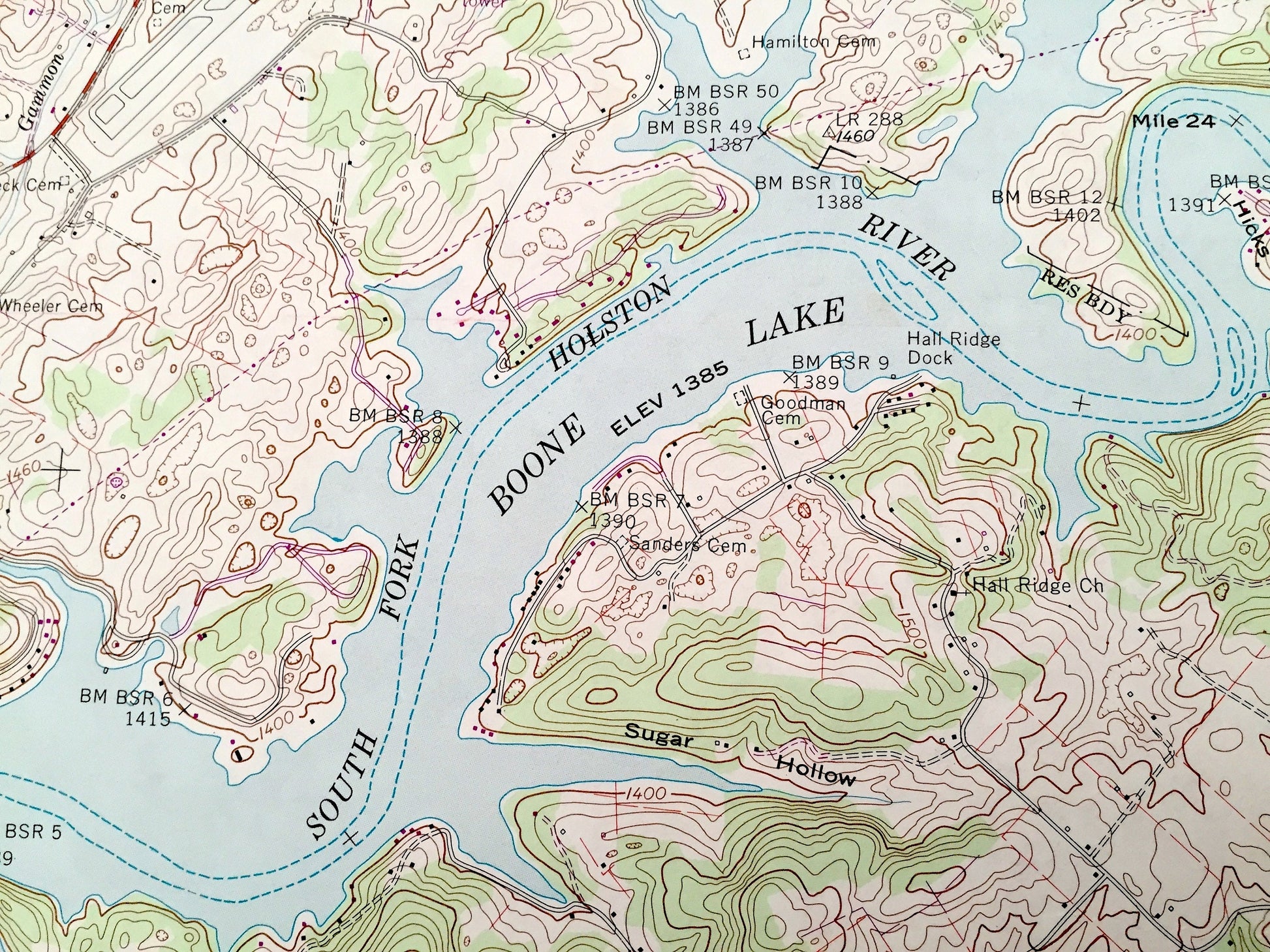 Points of Interest: Sullivan County, Washington County, Boone Lake, Fort Patrick Henry Lake, Boone Dam, Holston River, Watauga River, Free Hill, Brittle Ridge, King Ridge, Buffalo Ridge, Warriors Path State Park, Strickler Hollow, Snyder Creek, Ready Creek, and lots more hills, mountains, creeks, ponds, brooks, towns, schools, churches, roads and railroads.