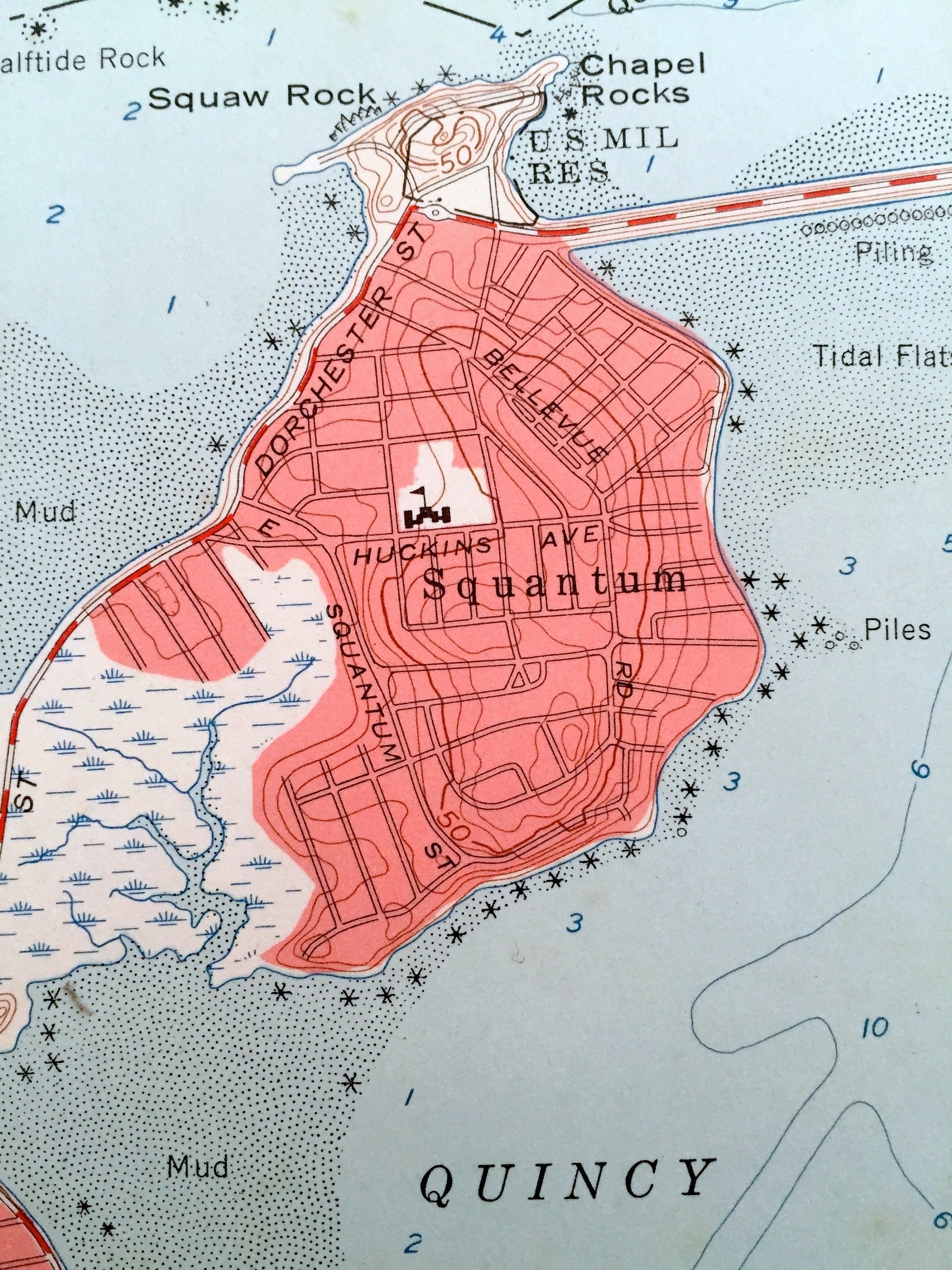 Points of Interest: Boston Inner Harbor, Charles River, Dorchester Bay, Quincy Bay, Harvard, MIT, Franklin Park, Neponset River, Jamaica Pond, Back Bay, Logan Airport, and lots more hills, rivers, marshes, houses, schools, churches, roads and train tracks.