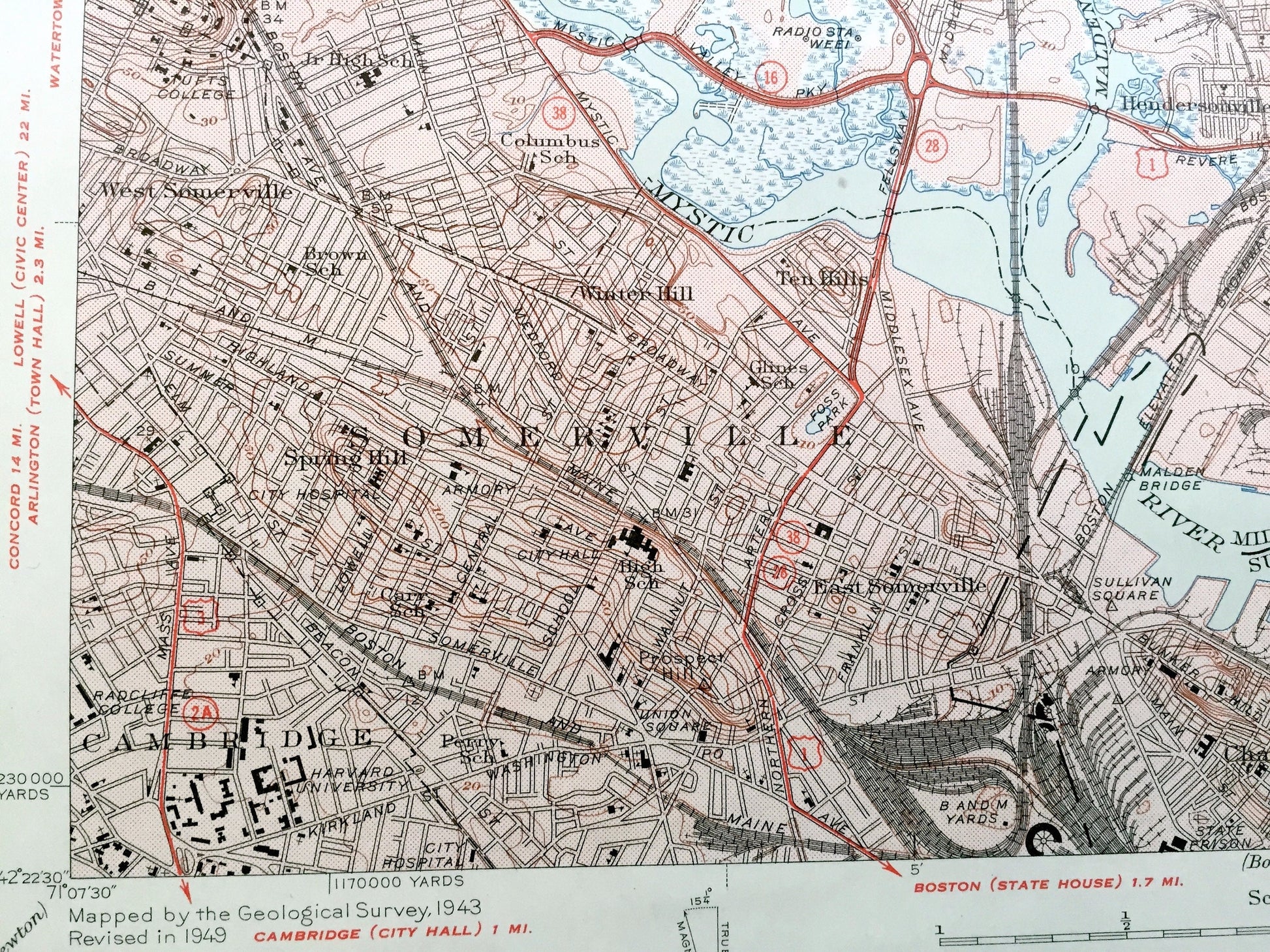 Antique Boston North, Massachusetts 1946 US Geological Survey Topographic Map – Somerville, Everett, Melrose, Saugus, Stoneham, Wakefield MA