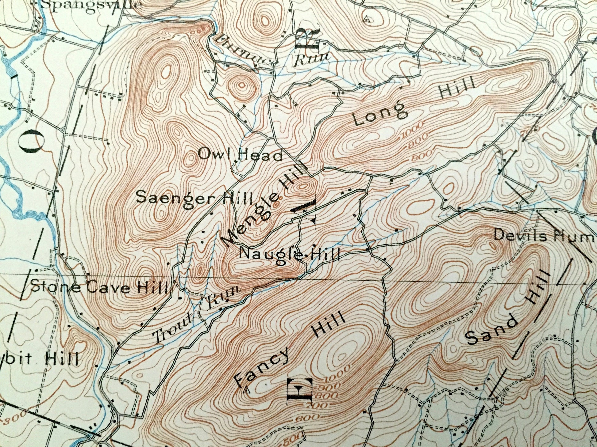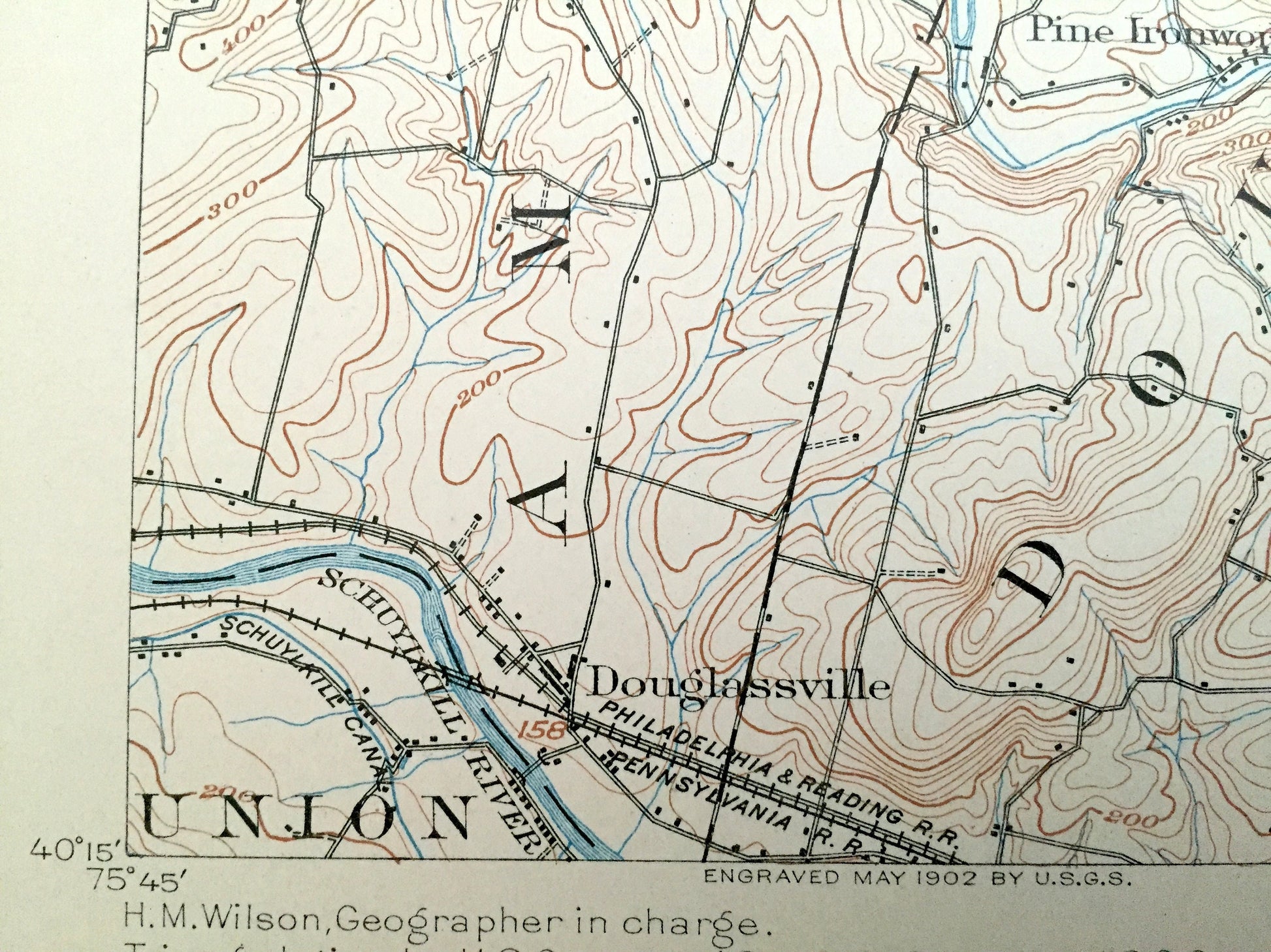 Points of Interest: Perkiomen Railroad, Philadelphia & Reading Railroad, Shenkel Hill, Fancy Hill, Topton Mountain, Rittenhouse Gap, and lots more hills, mountains, creeks, towns, roads and train tracks.