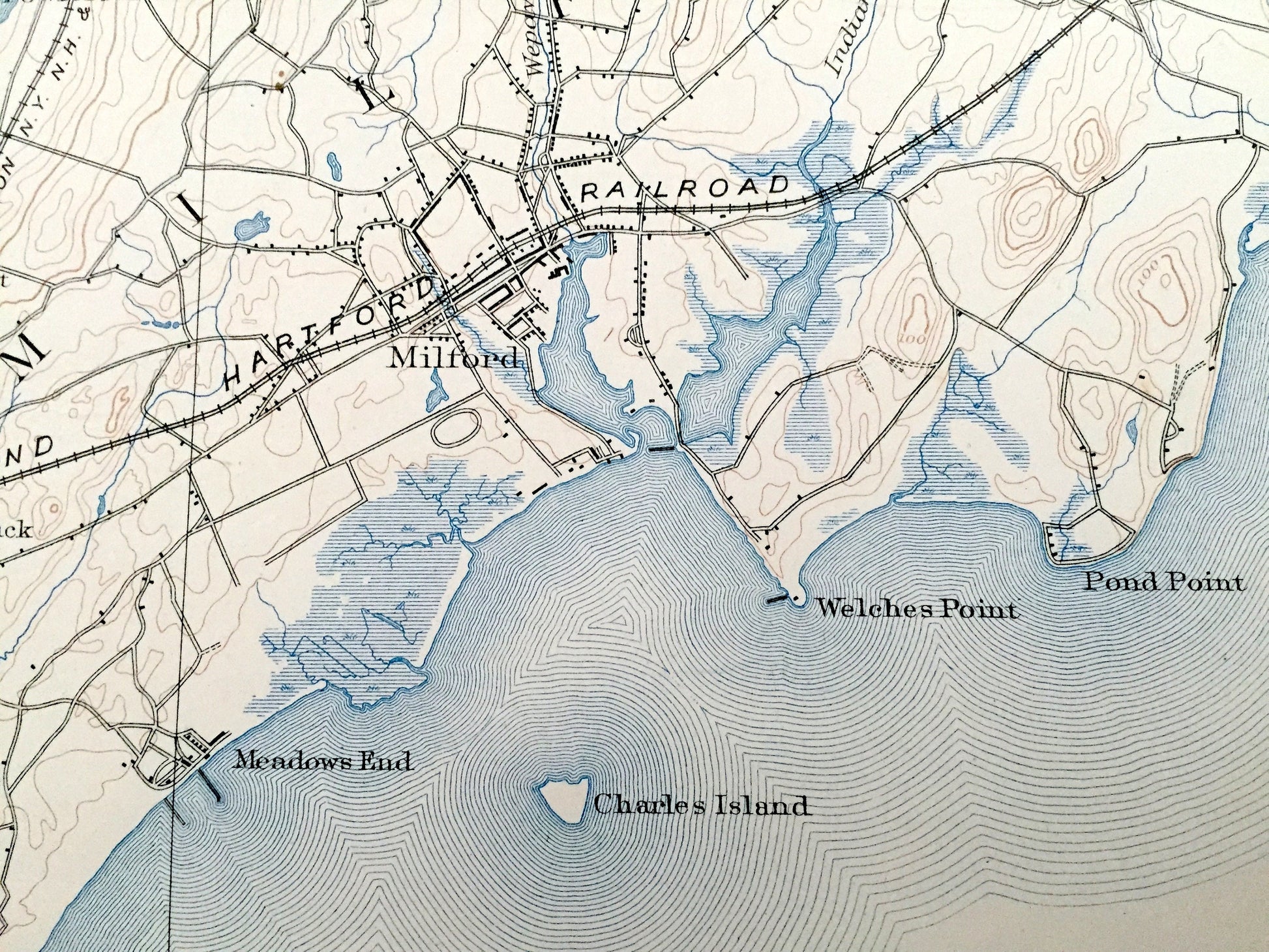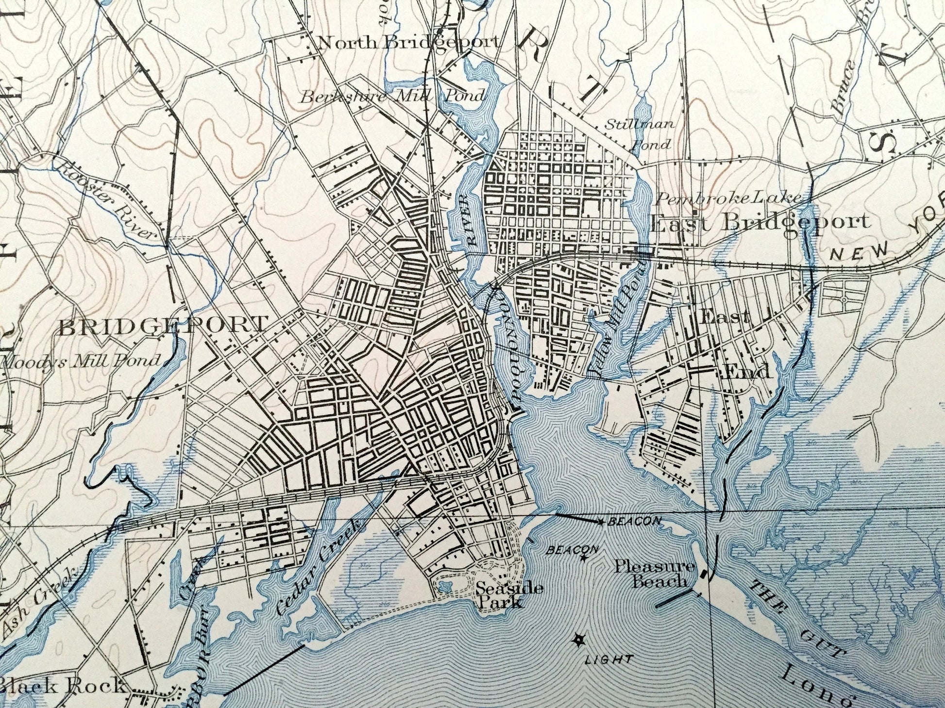 Beautiful, antique map of Bridgeport, Connecticut and surrounding Fairfield & New Haven County on the Connecticut Coast. This is an authentic 1893 edition, 1904 print from the U.S. Geological Survey and NOT a computer reproduction.
