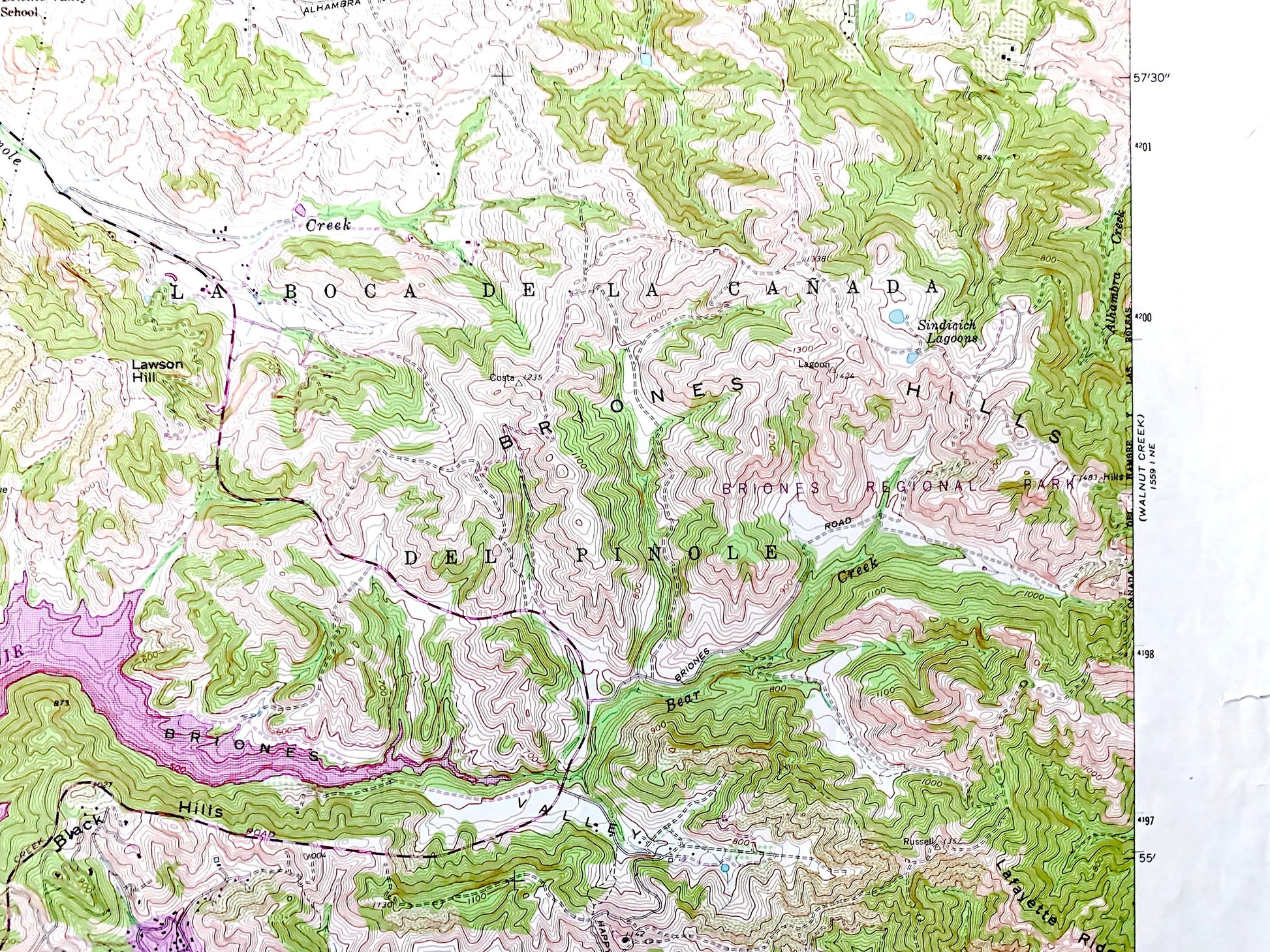Beautiful, antique map of Briones Valley, California and surrounding Contra Costa County & Alameda County areas. This is an authentic 1959 edition, 1969 print from the U.S. Geological Survey and NOT a computer reproduction.