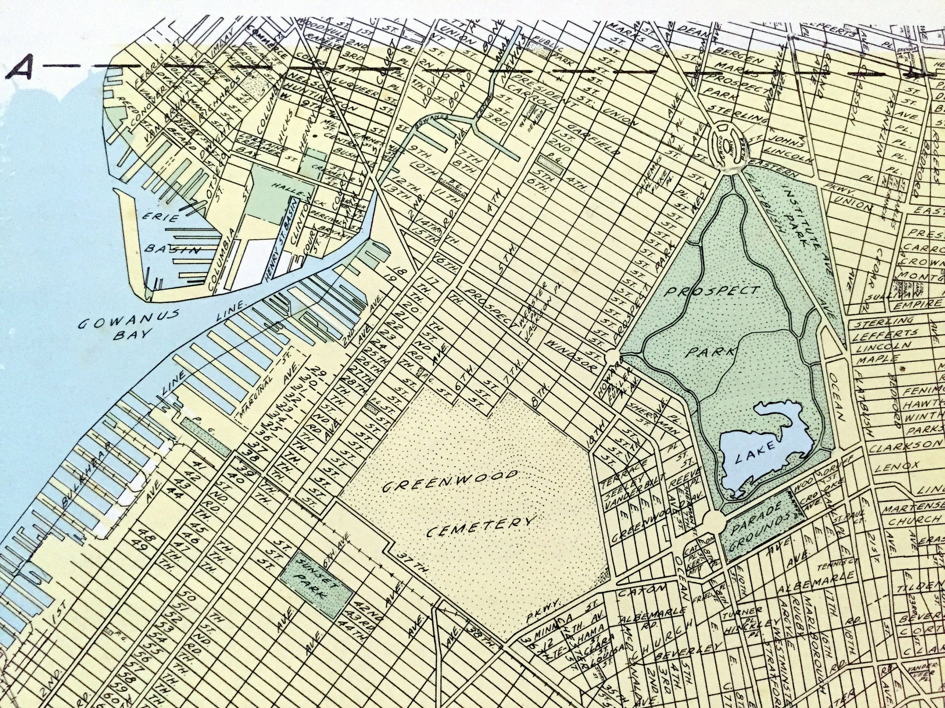Antique Brooklyn Borough, New York 1941 Historical Atlas Map – Williamsburg, Greenpoint, Park Slope, Red Hook, Bushwick, Kings County NY NYC