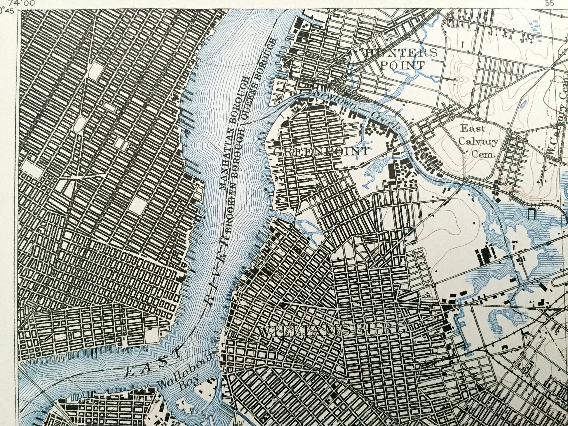 See what Manhattan, Brooklyn & Queens looked like 120 years ago. Lots of intricate details and geological contours. Map even has little squares for every house that existed at the time. The USGS cartographers were very thorough back then! This is one of the rare maps with the map legend on the front.