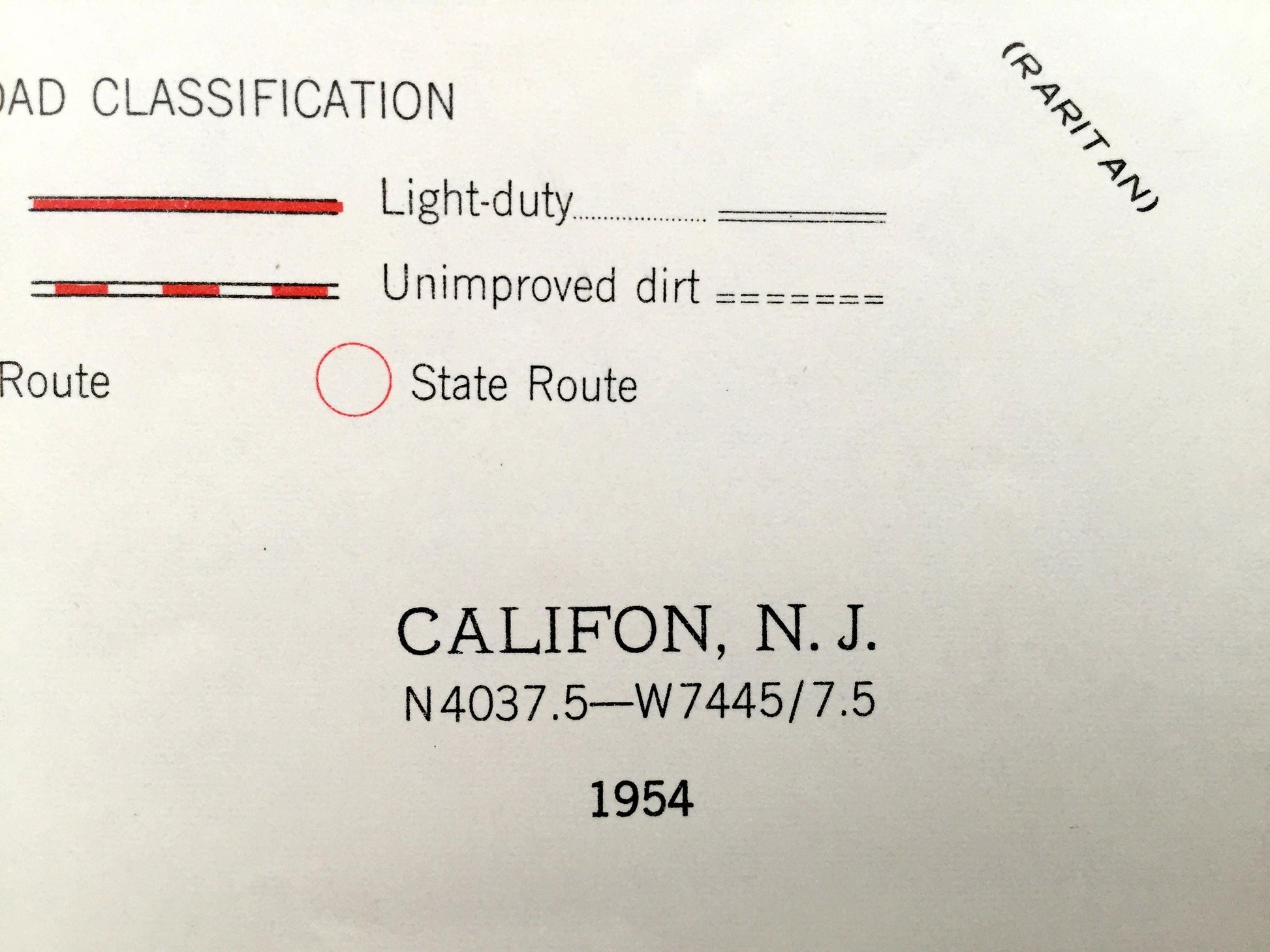 Beautiful, antique map of Califon, New Jersey and surrounding Hunterdon & Morris County areas. This is an authentic 1954 print of 1954 survey data from the U.S. Geological Survey and NOT a computer reproduction.