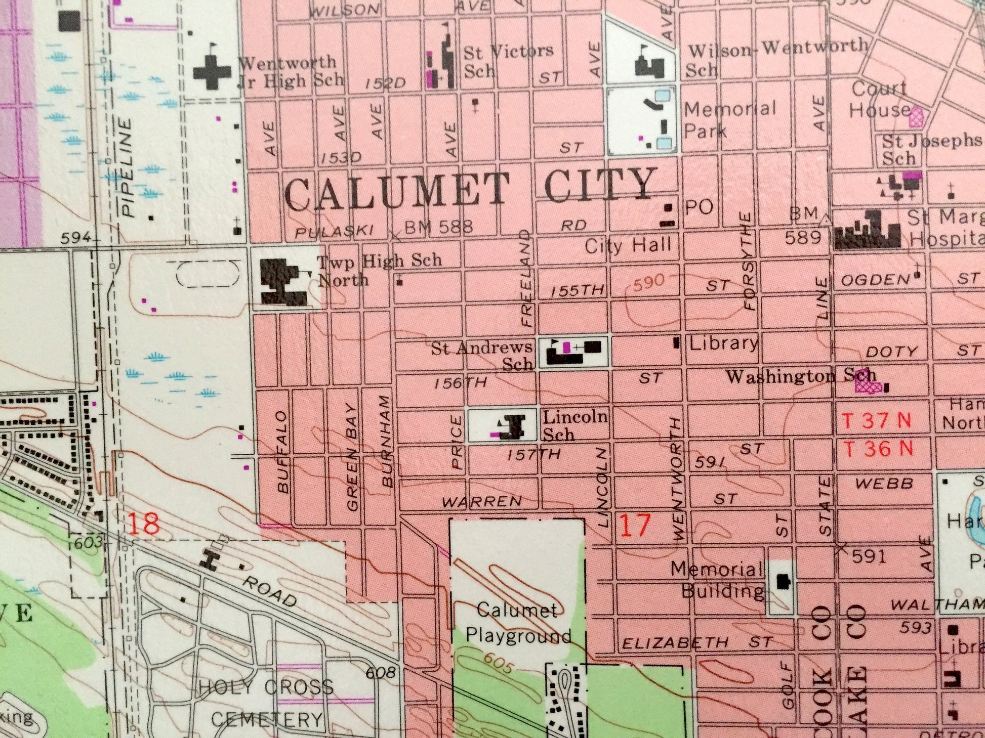 Beautiful, antique map of Calumet City, Illinois and surrounding Indiana areas. This is an authentic 1968 edition, 1981 print from the U.S. Geological Survey and NOT a computer reproduction.