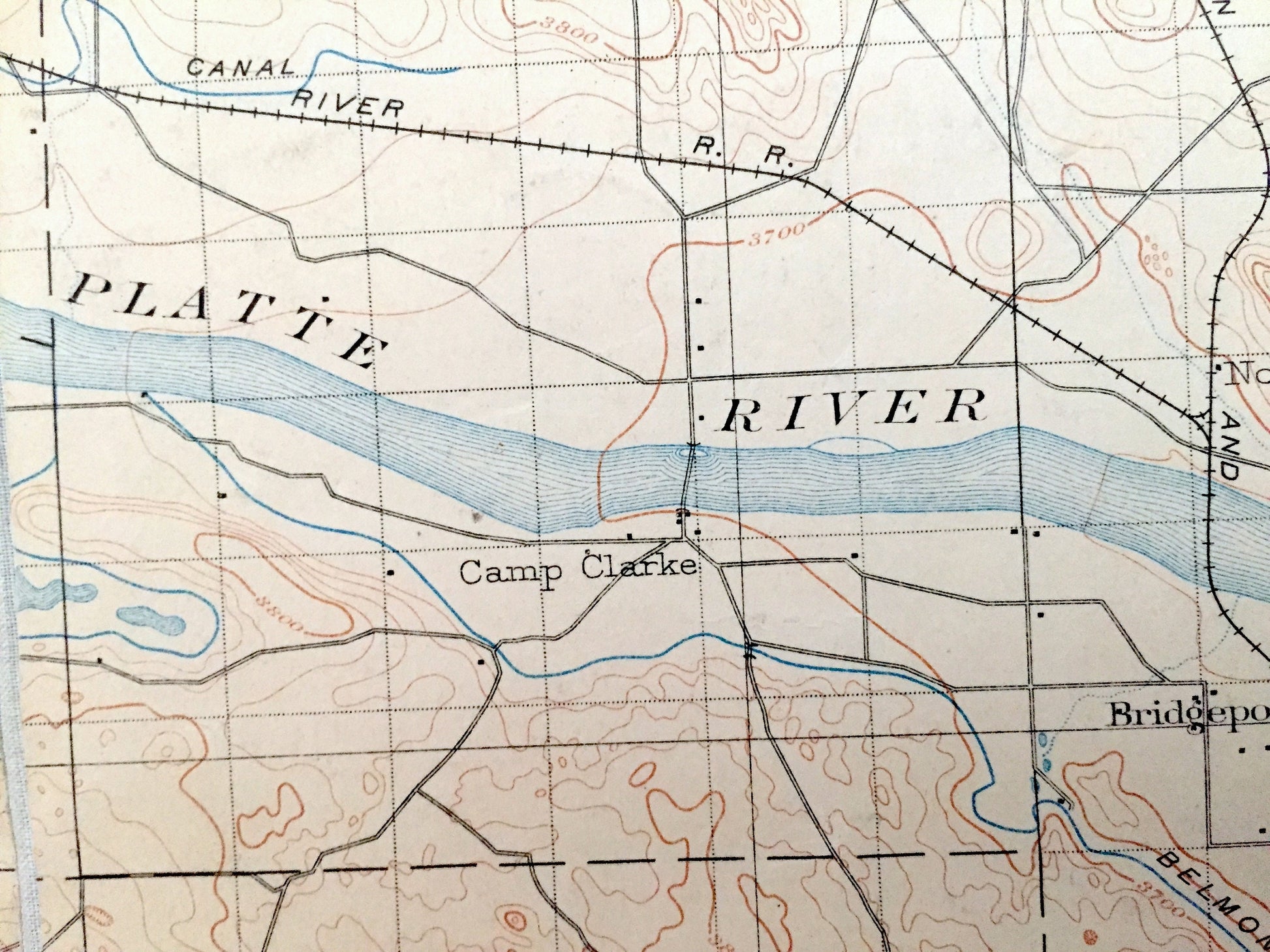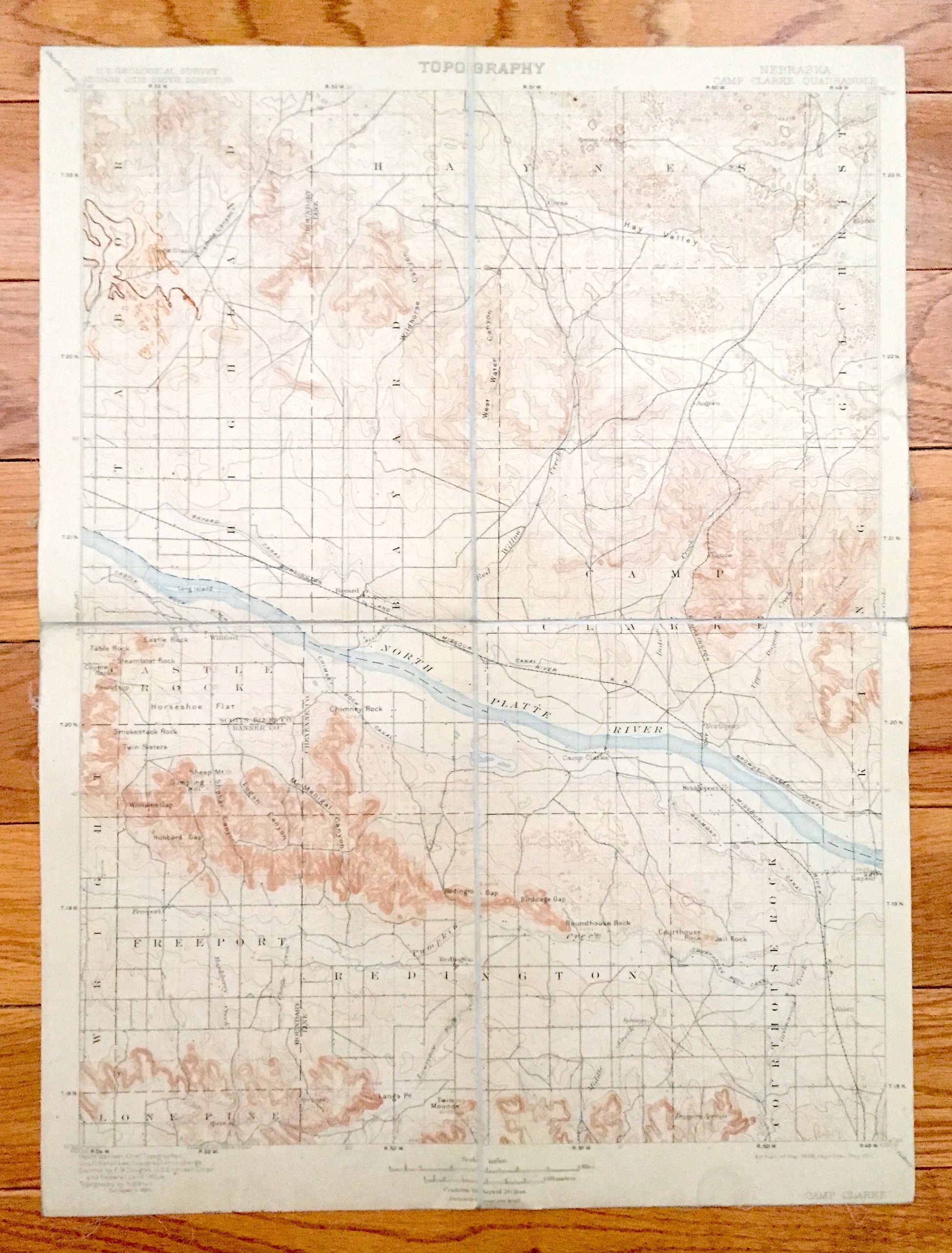 Beautiful, antique map of Camp Clarke, Nebraska and surrounding Cheyenne, Scotts Bluff and Banner County areas. This is an authentic 1898 edition, 1911 print from the U.S. Geological Survey and NOT a computer reproduction.