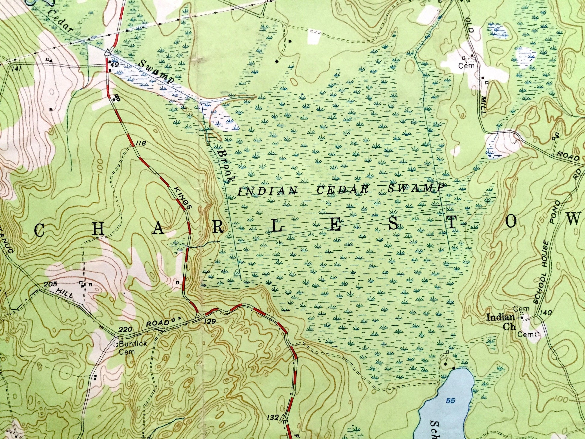 Points of Interest: Washington County, Burlingame Reservation, Watchaug Pond, Wood River, Pawcatuck River, Pasquiset Pond, Fort Neck Pond, Shumunkanuc Hill, Indian Cedar Swamp, Ellis Flats, Shannock Hill, Carolina Reservation, Kenyon Hill, Wilbur Hill, Woody Hill Reservation and many more hills, creeks, ponds, houses, schools, churches and roads.