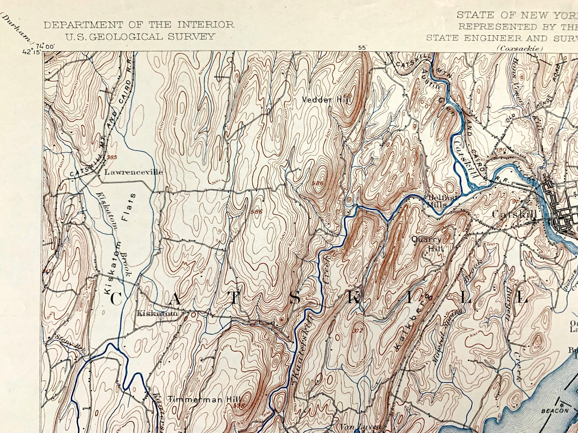 Beautiful, antique map of the Catskill, New York and the surrounding Hudson River Valley area. This is an authentic 1895 edition, 1925 print from the U.S. Geological Survey and NOT a computer reproduction.