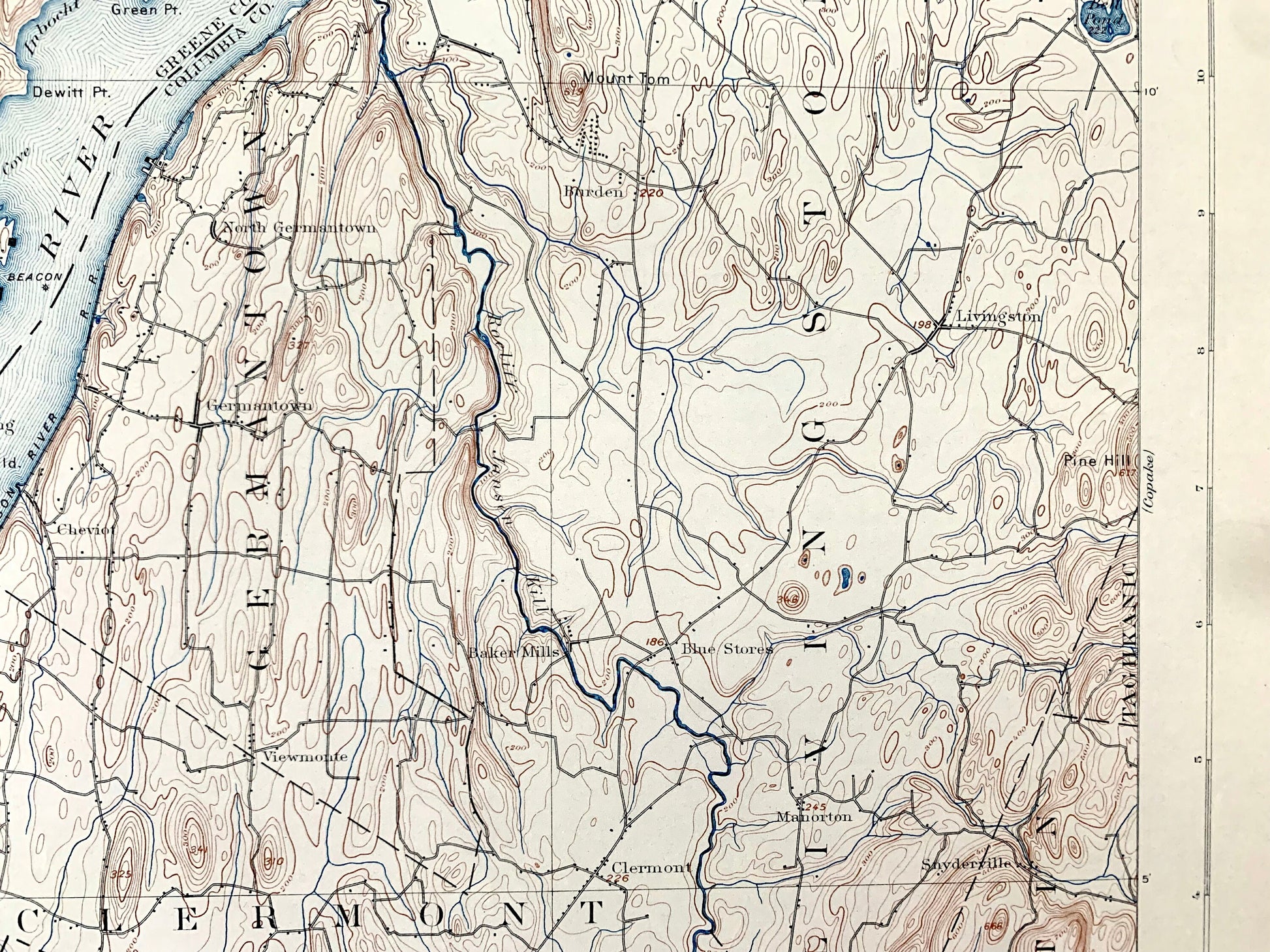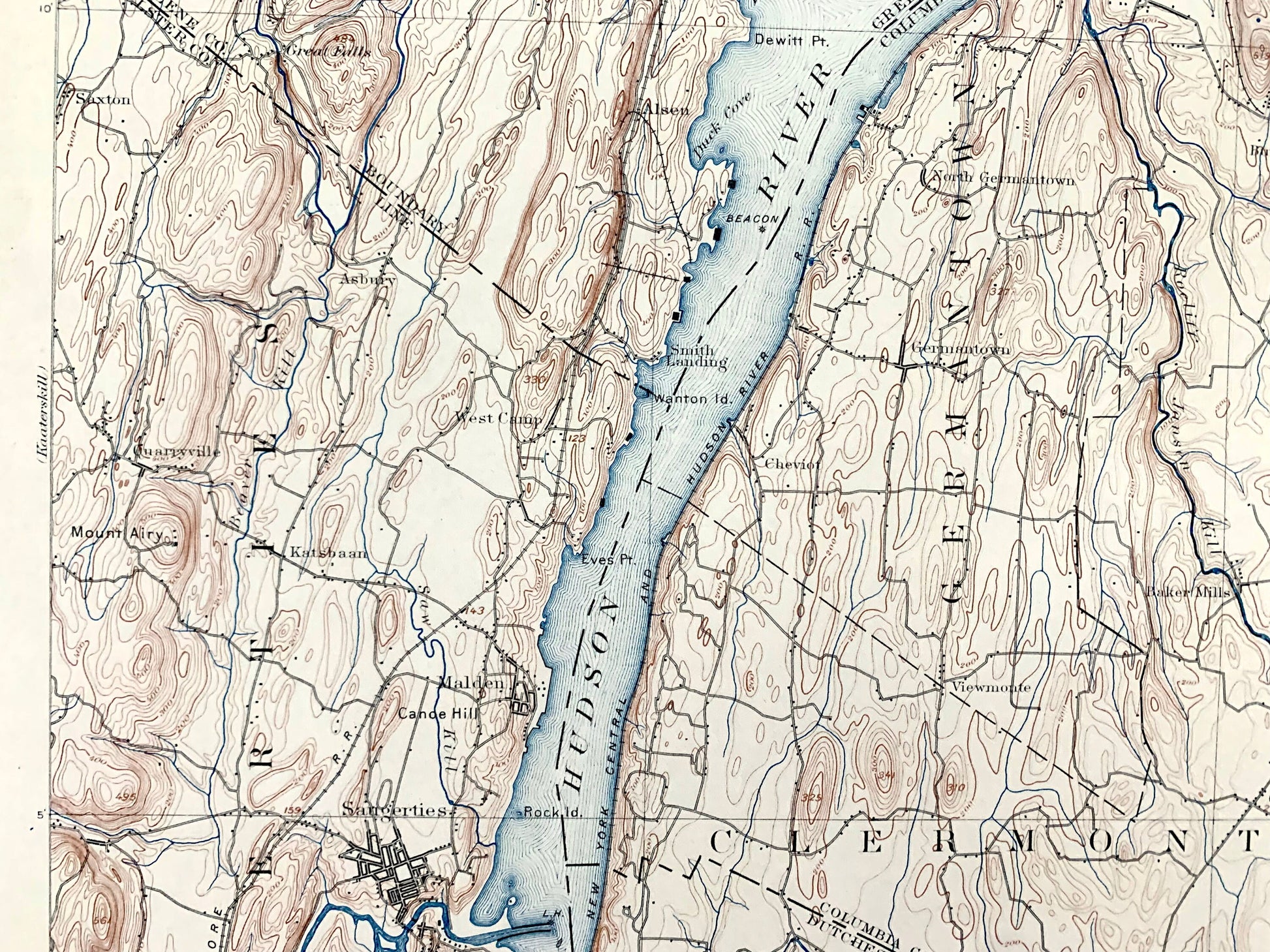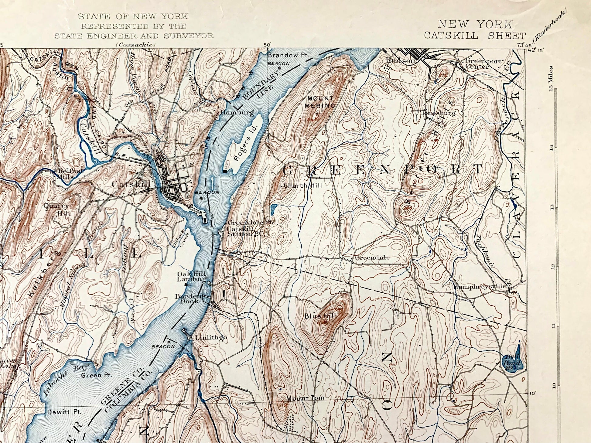 Antique Catskill, New York 1895 US Geological Survey Topographic Map – Saugerties, Hudson, Greenport, Germantown, Livingston, Clermont, NY