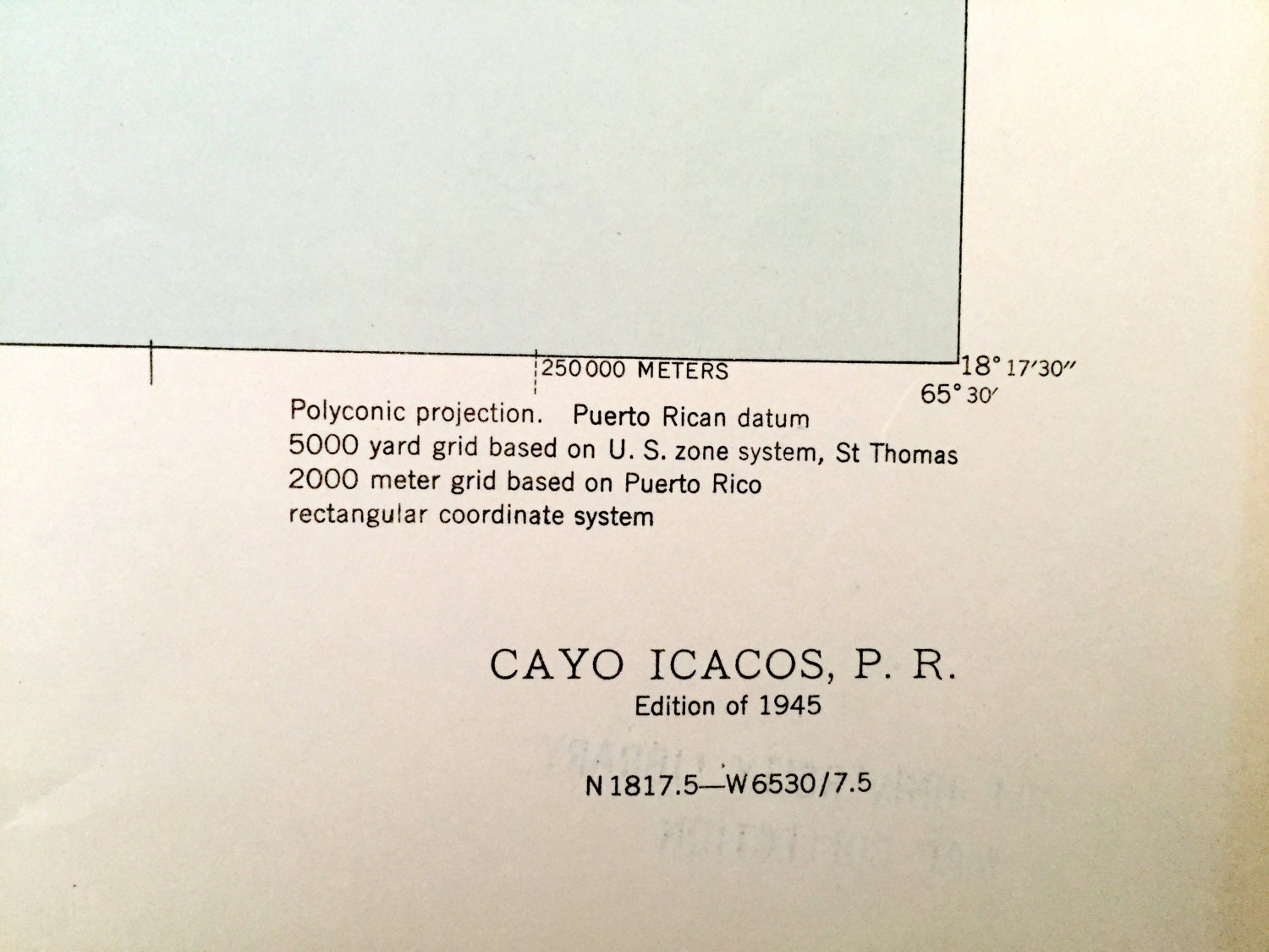 Beautiful, antique map of Cayo Icacos, Puerto Rico and surrounding municipalities. This is an authentic 1945 print from the U.S. Geological Survey and NOT a computer reproduction.