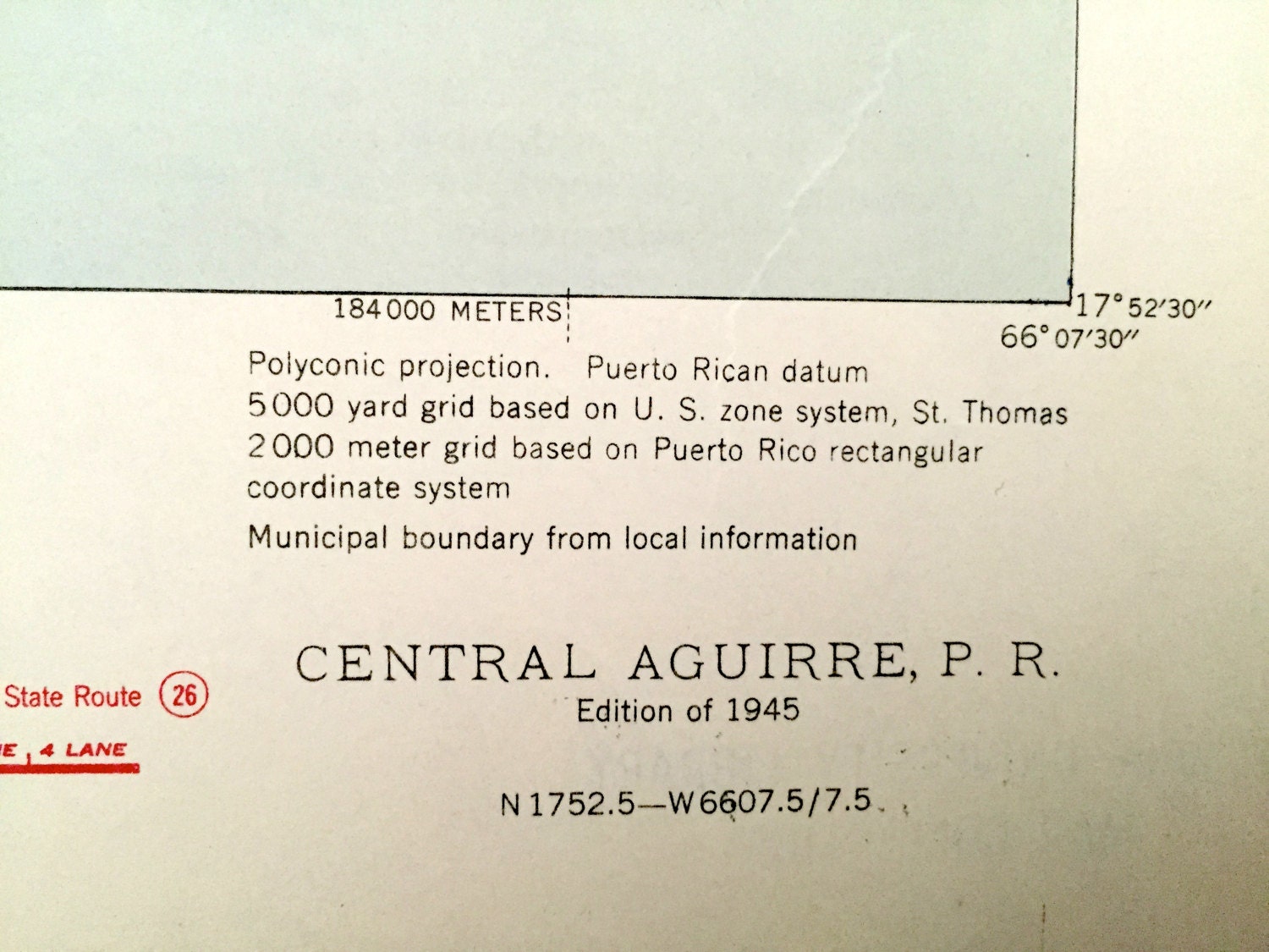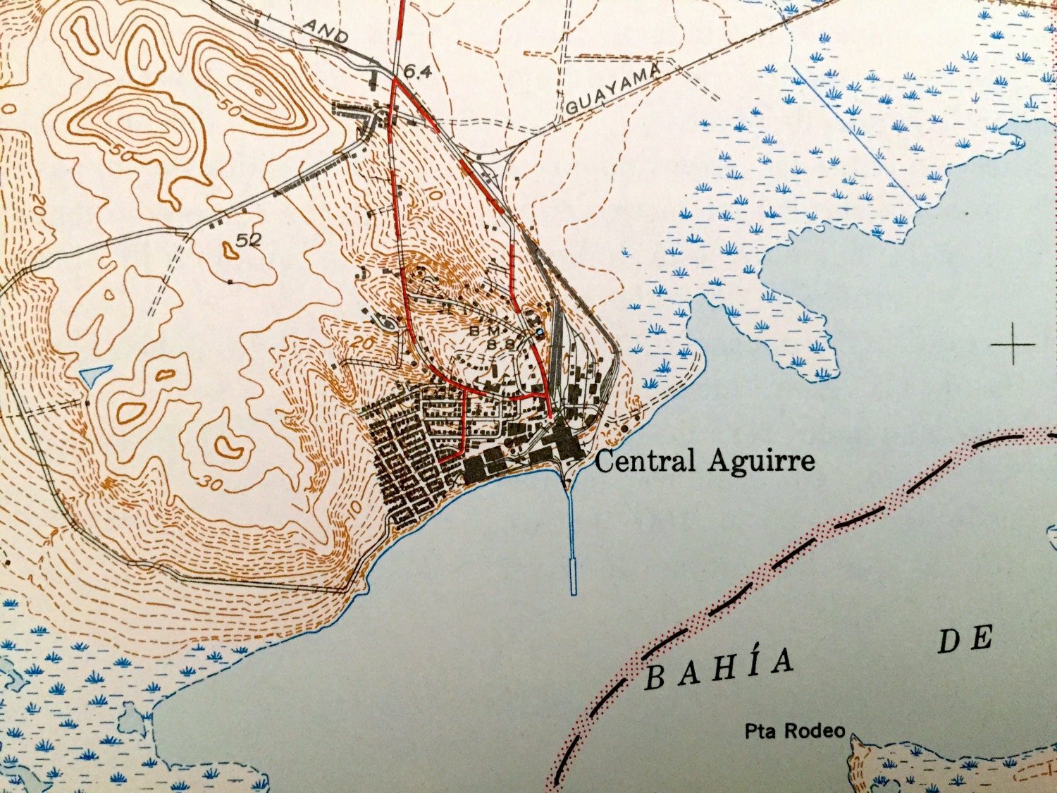Beautiful, antique map of Central Aguirre, Puerto Rico and surrounding municipalities. This is an authentic 1945 print from the U.S. Geological Survey and NOT a computer reproduction.
