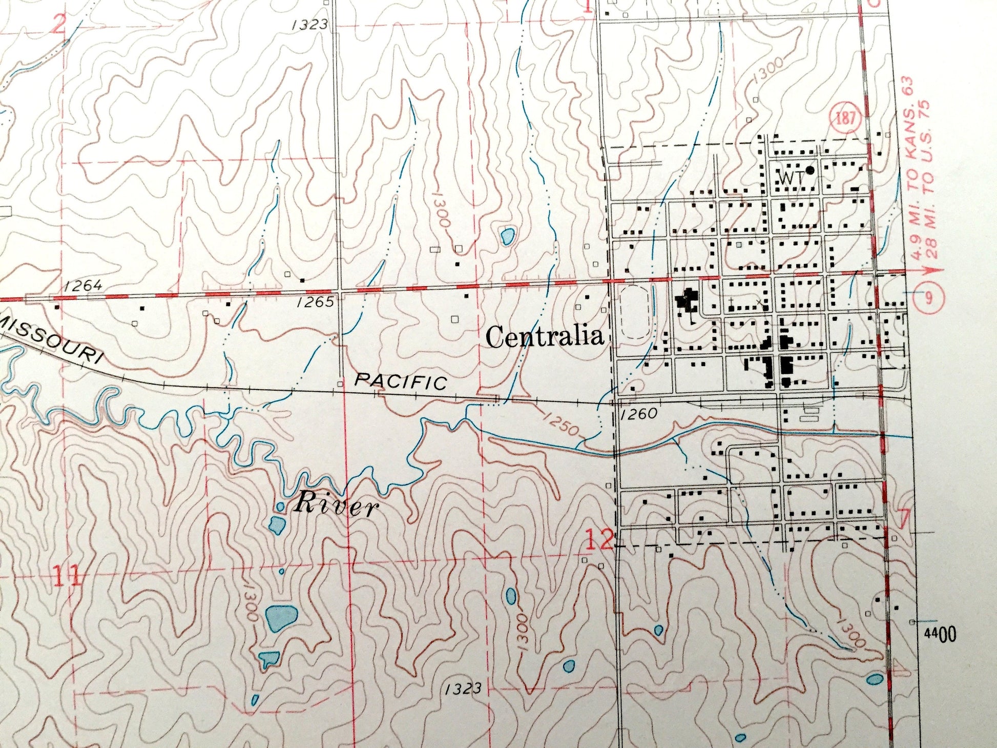 Beautiful, antique map of Centralia, Kansas and surrounding Nemaha & Marshall County area. This is an authentic 1969 print from the U.S. Geological Survey and NOT a computer reproduction.