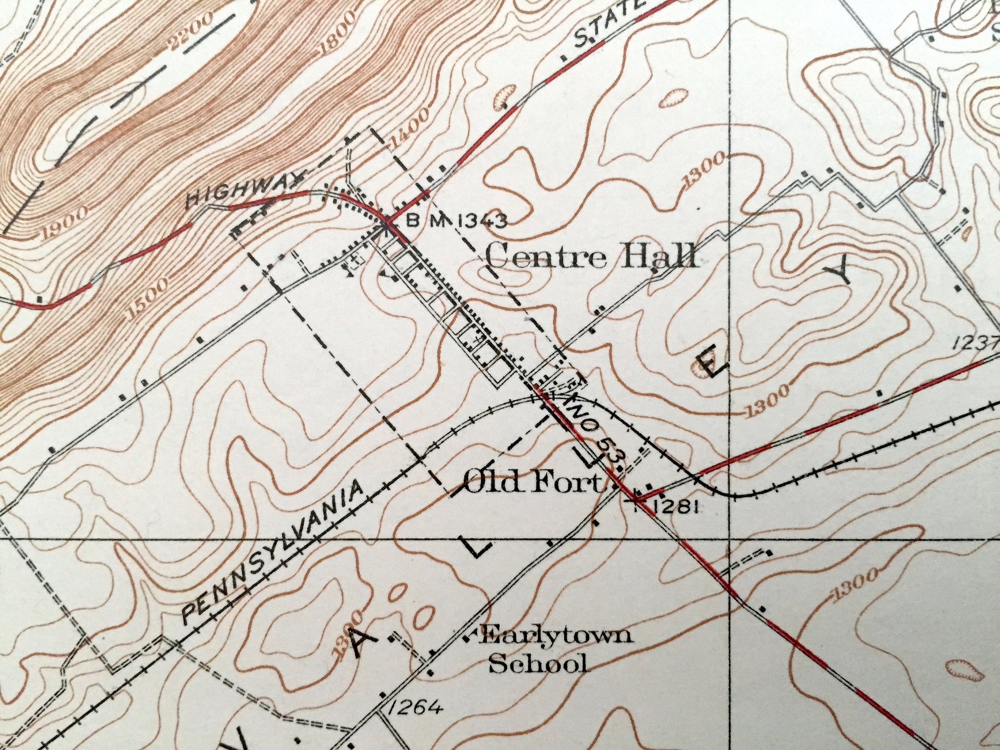Beautiful, antique map of Centre Hall, Pennsylvania and surrounding Centre, Mifflin & Clinton County areas. This is an authentic 1929 print from the U.S. Geological Survey and NOT a computer reproduction.