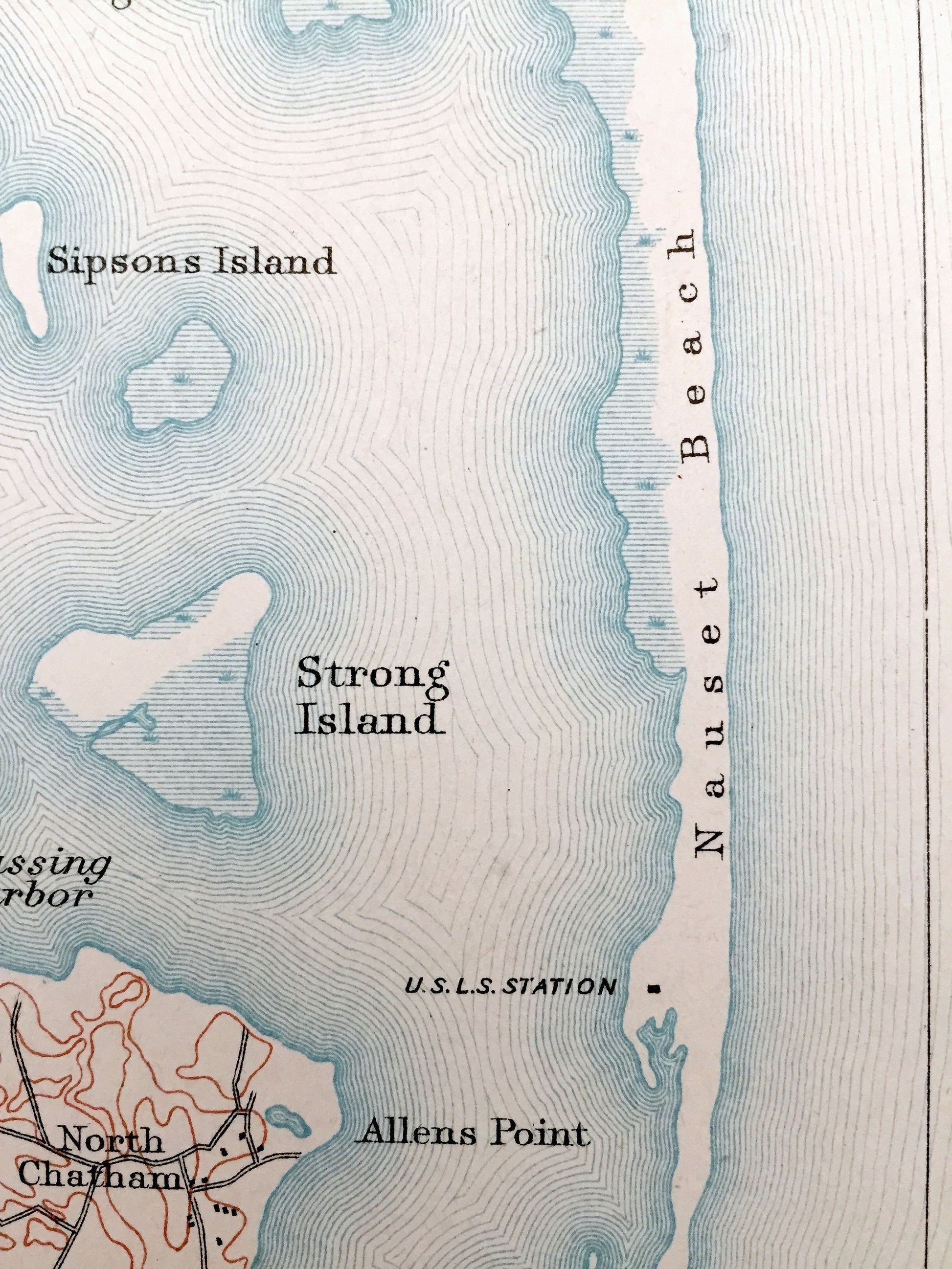 Beautiful, antique map of Chatham, Massachusetts and surrounding Barnstable County area. This is an authentic 1888 print from the U.S. Geological Survey and NOT a computer reproduction.
