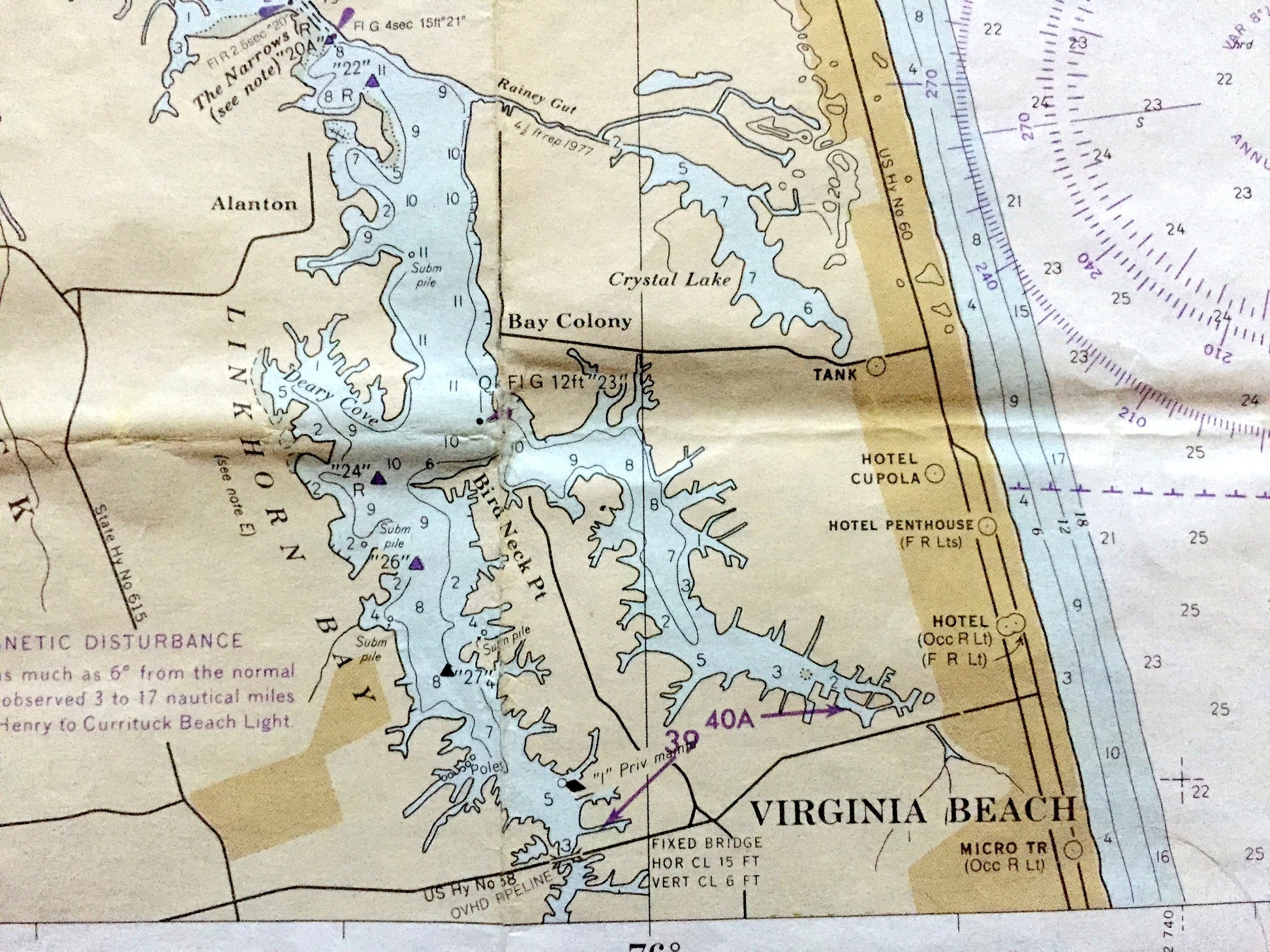 Antique Chesapeake Bay 1979 US Coast Guard Nautical Map – Cape Charles to Norfolk Harbor, Virginia Beach, Newport News, York River, Henry VA