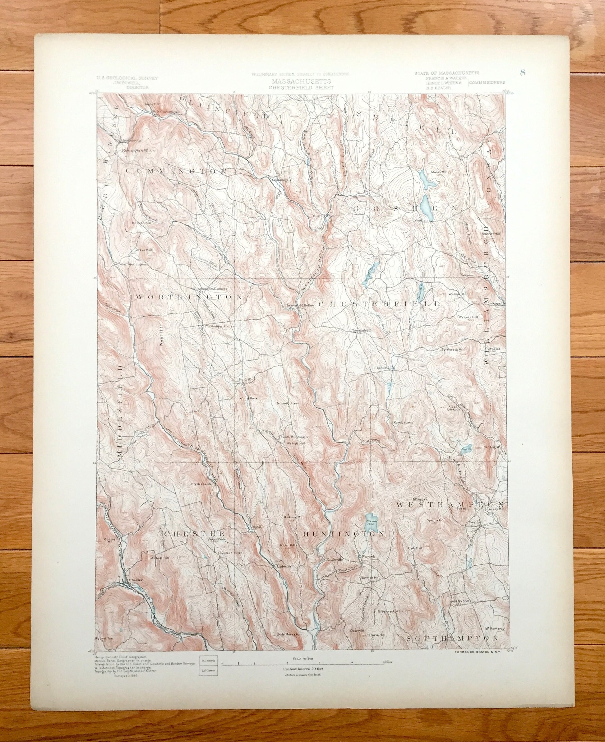 Antique Chesterfield, Massachusetts 1886 US Geological Survey Topographic Map – Westhampton, Worthington, Goshen Chester Hampshire County MA