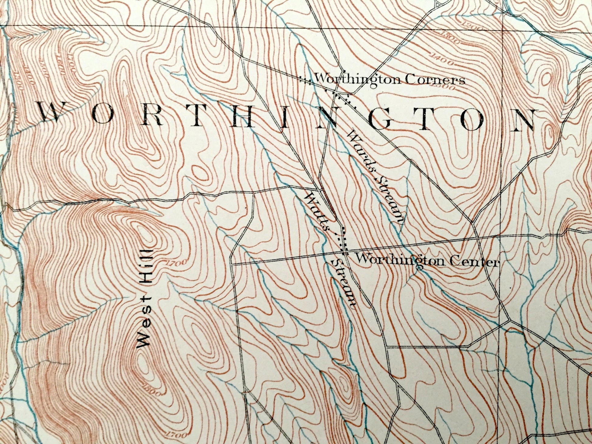 Points of Interest: Westfield River, Mount Pisgah, Cub Hill, Little River, Swift River, Bryant Mountain, Battlecock Hill, Walker Brook, Gobble Mountain, Norwich Pond, West Hill, Kidds Lookout, Robert Meadow Brook, Walnut Hill, and lots more hills, brooks, marshes, villages, roads and train tracks.