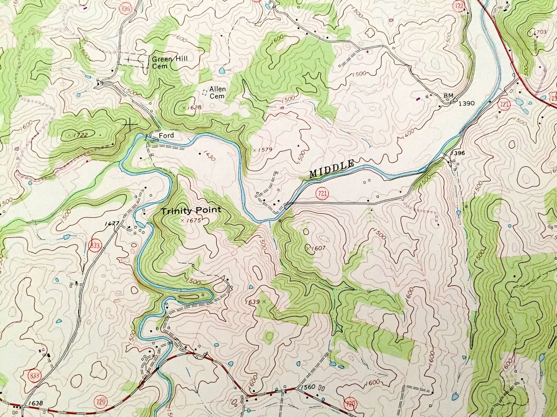 Points of Interest: Augusta County, George Washington National Forest, Little North Mountain, Middle River, Jennings Branch, Buffalo Branch, Edison Creek, Trinity Point, and many more hills, streams, ponds, houses, schools, churches and roads.