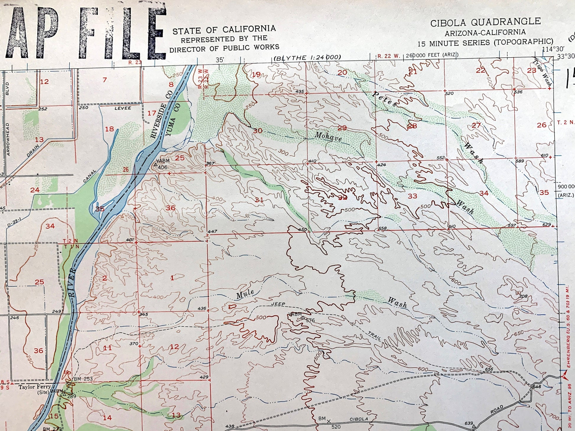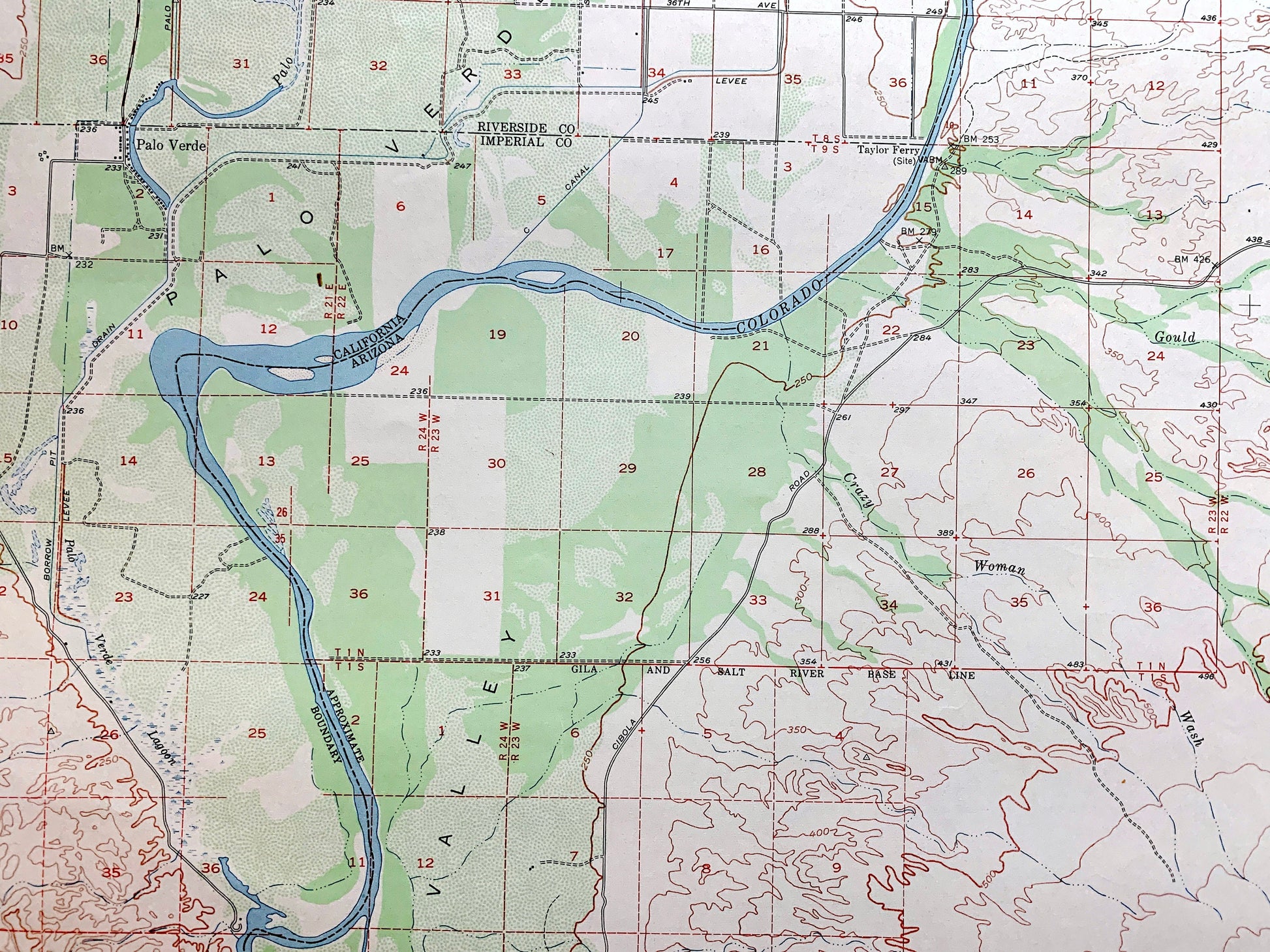 Antique Cibola, Arizona 1951 US Geological Survey Topographic Map – Palo Verde, Colorado River, Yuma Imperial County California, AZ, CA