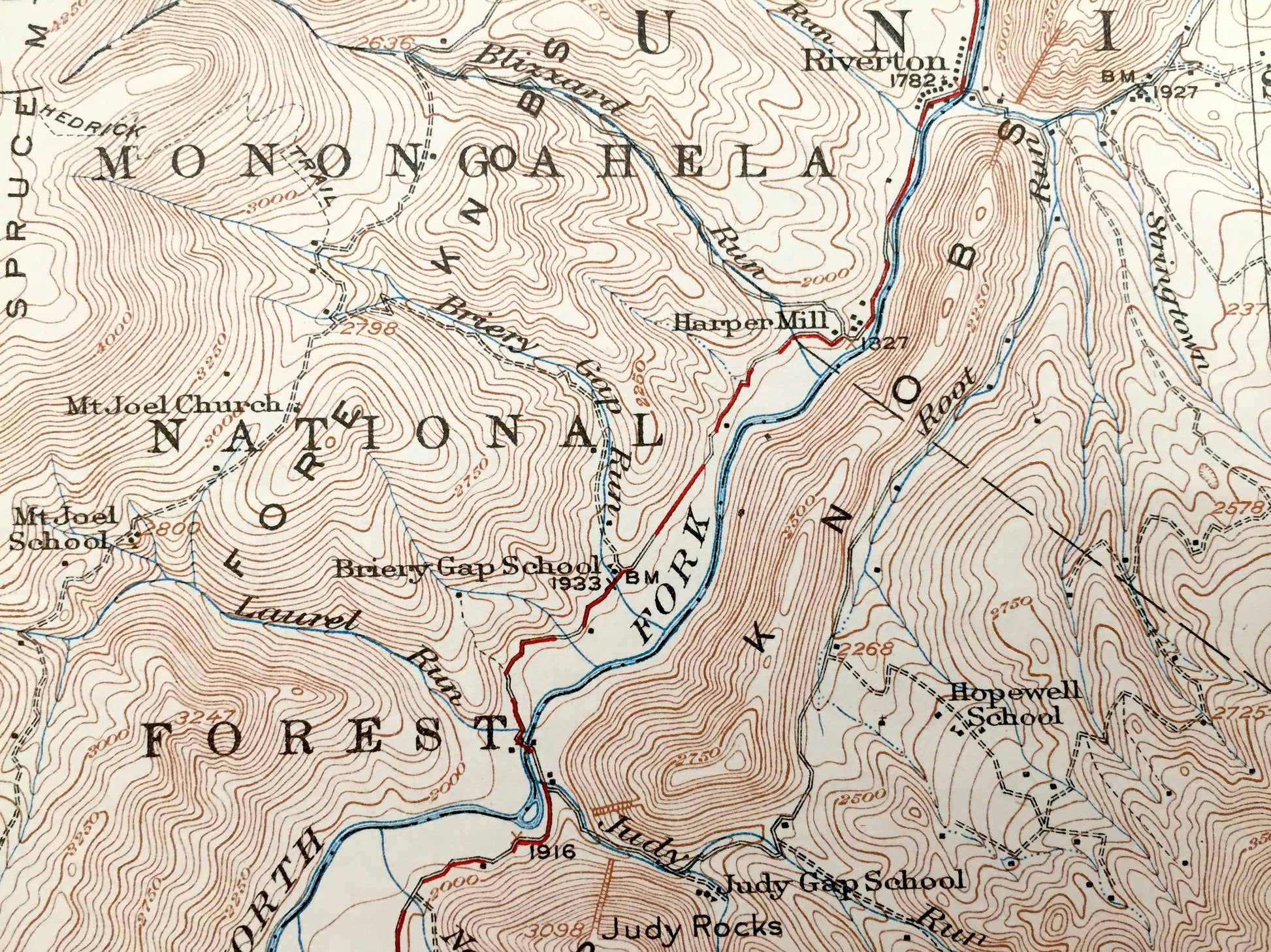 Points of Interest: North Fork, Monongahela National Forest, River Knobs, Sandy Ridge, South Branch Potomac River, Stone Mountain, Pickle Mountain, Goshen Ridge, Chestnut Woods, Colic Mountain, and lots more hills, mountains, creeks, towns, roads and train tracks.