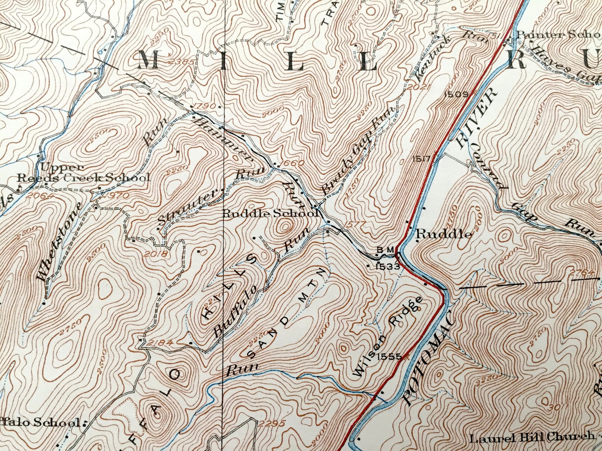 See what West Virginia looked like over 95 years ago. Lots of intricate details and geological contours. Map even has little squares for every house that existed at the time. The USGS cartographers were very thorough back then! On the back is a description of topographic symbols and map guide.