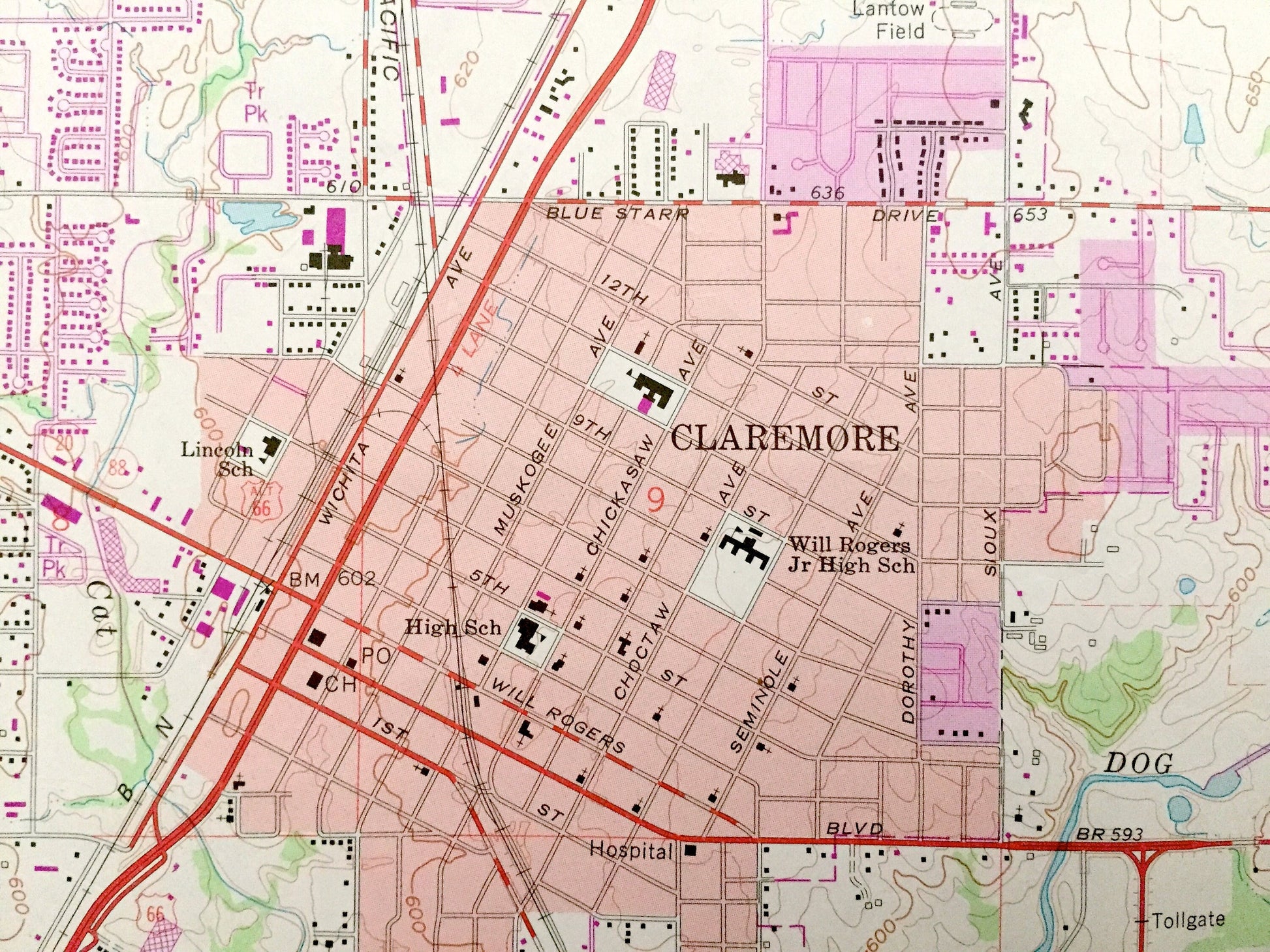 See what Claremore and Lake Claremore looked like almost 60 years ago. Lots of intricate details and geological contours. Map even has little squares for every house that existed at the time. The USGS cartographers were very thorough back then!