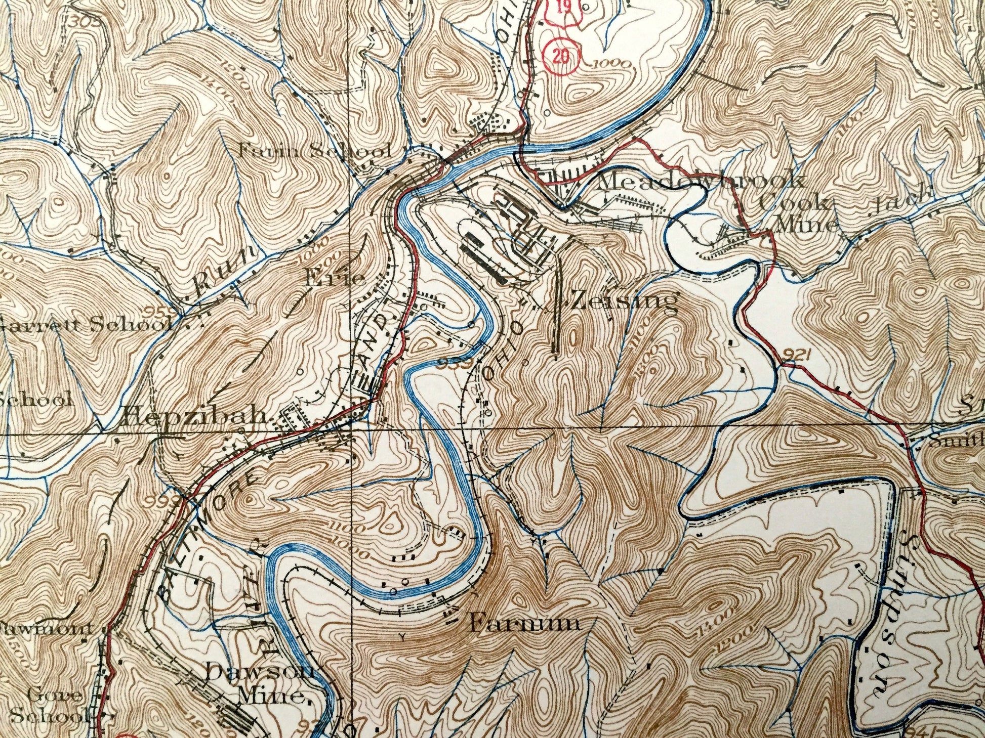 See what West Virginia looked like over 95 years ago. Lots of intricate details and geological contours. Map even has little squares for every house that existed at the time. The USGS cartographers were very thorough back then! On the back is a description of topographic symbols and map guide.