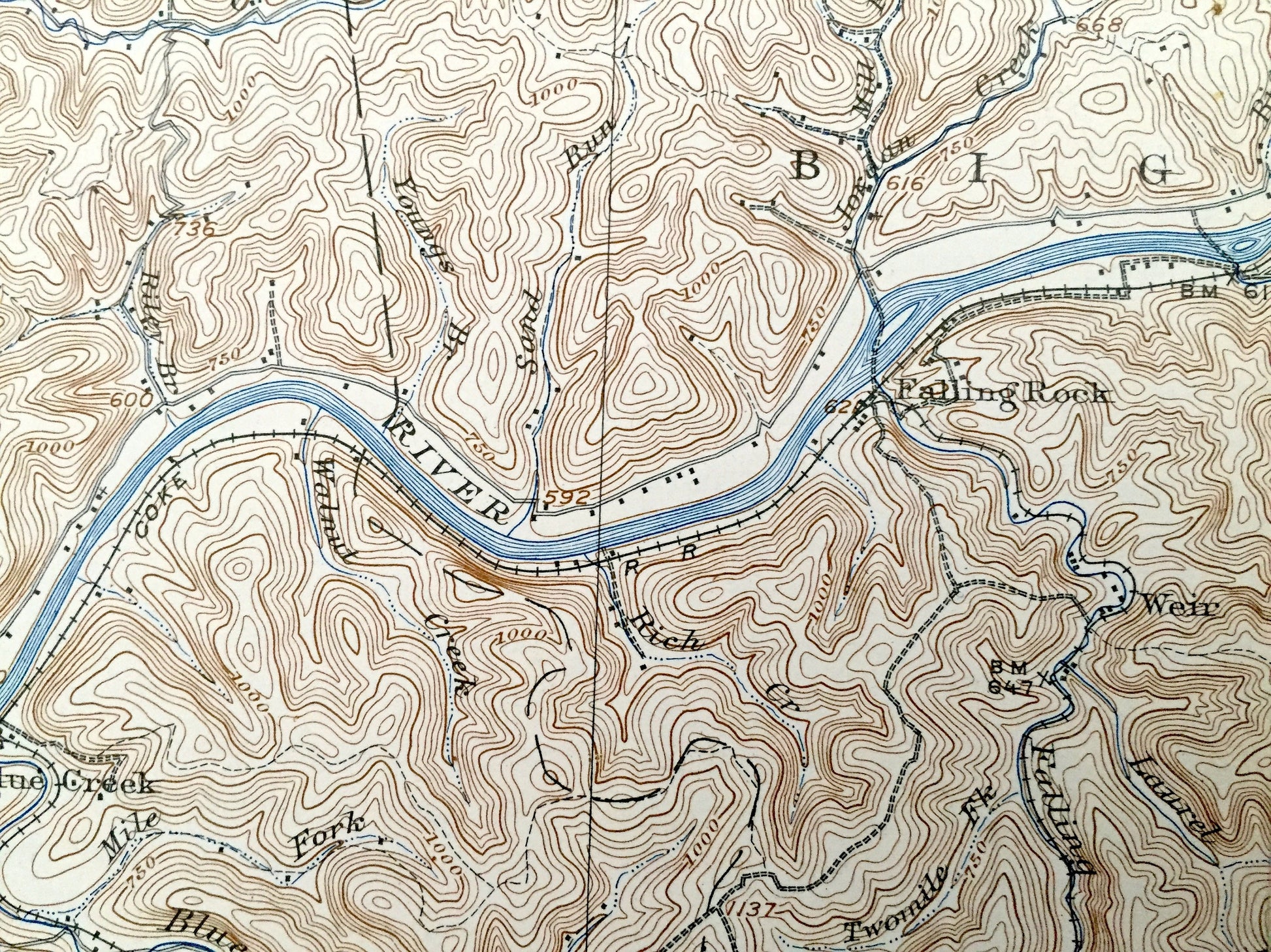 See what West Virginia looked like over 100 years ago. Lots of intricate details and geological contours. Map even has little squares for every house that existed at the time. The USGS cartographers were very thorough back then! On the back is a description of topographic symbols and map guide.