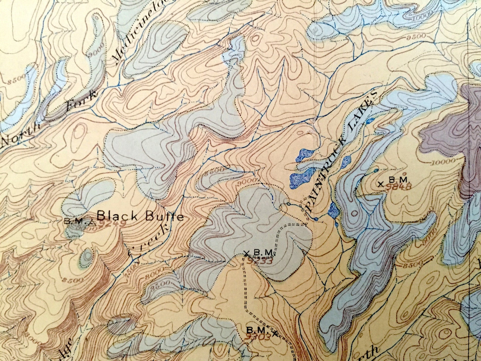 Points of Interest: Big Horn National Forest, Big Horn Mountains, Big Horn County, Johnson County, Cloud Peak, Mather Peak, Black Tooth, Paintrock Lakes, Paintrock Creek, Black Butte, Penrose Peak, Tensleep Creek, Tensleep, Canyon, Onion Gulch, Canyon Ridge, Canyon Creek, No Wood Creek and lots more creeks, mountains, ranges, lakes, houses and roads.