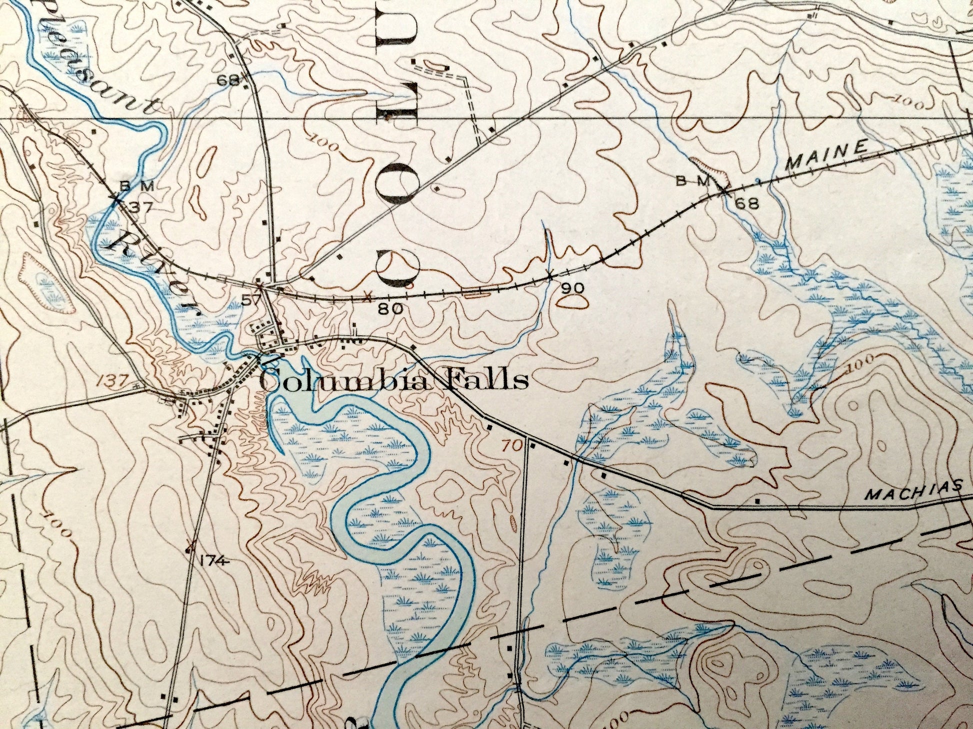 Points of Interest: Atlantic Ocean, Maine Coast, Pleasant River, Pleasant Bay, Cape Split Harbor, West River, Indian River, Moosabec Reach, Alleys Bay, Chandler Bay, Mason Bay, Chandler River, Englishman Bay, Pond Cove, Shorey Cove, Roque Island Harbor, Roque Island, Great Spruce Island, Head Harbor Island, Great Wass Island, Beals Island, Moose Neck, Cape Split, Nash Harbor, The Highlands, Doyle Island, Goose Islands, Hardwood Island, Duck Ledges, Shabbit Island, Carryingplace Cove, Sand River Beach, Popplestone Beach, Rodgers Island, Looks Head, Pond Cove Island, Porcupine Ledges, Machias River, Jim Wood Ridge, Seward Ridge, Gilson Hill, Kilton Mountain, Deep Hole Point, Halls Ridge, French House Island and lots more hills, streams, ponds, marshes, houses, islands—a lot of islands—coves and roads.