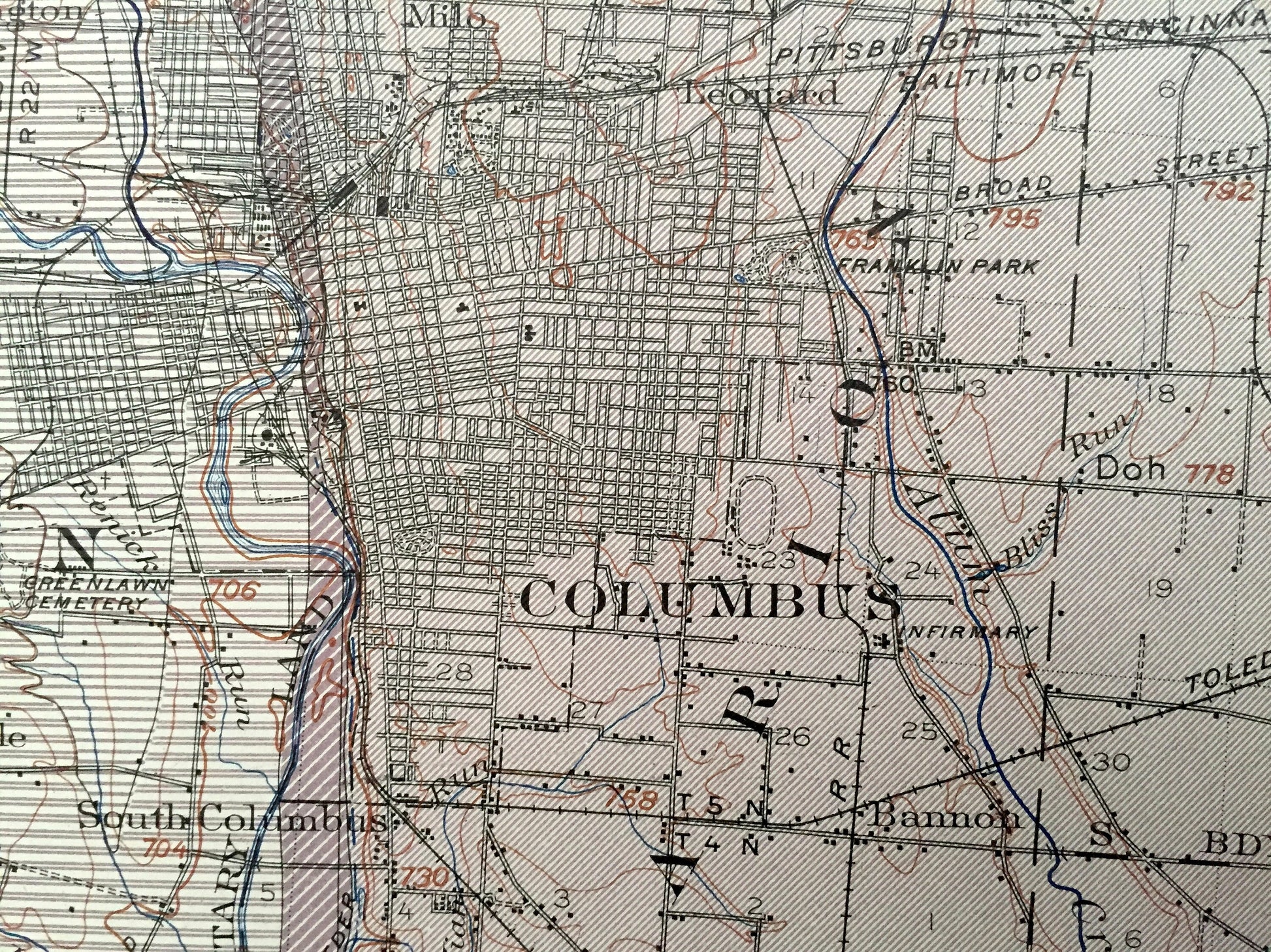 Points of Interest: Scioto River, Olentangy River, Toledo & Ohio Central Railroad, Pittsburg Cincinnati Chicago & St. Louis Railroad, Mill Creek, Hocking Valley Railway, and lots more hills, mountains, creeks, towns, roads and train tracks.