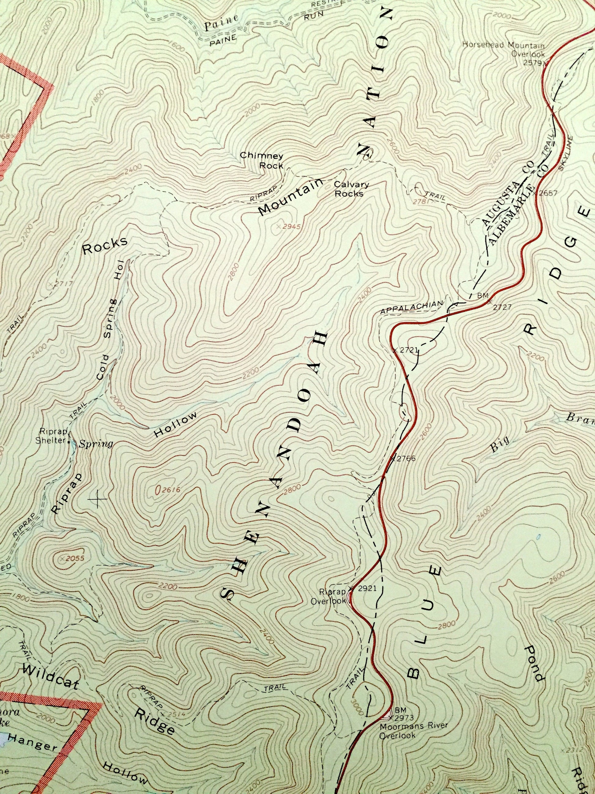 Points of Interest: Shenandoah National Park, South River, Blue Ridge, Rocks Mountain, Trayfoot Mountain, Patterson Ridge, Skyline Drive, Wildcat Ridge, Pond Ridge, Norfolk & Western Railway, Furnace Mountain, Cool Spring Hollow, and many more hills, streams, ponds, houses, schools, churches and roads.