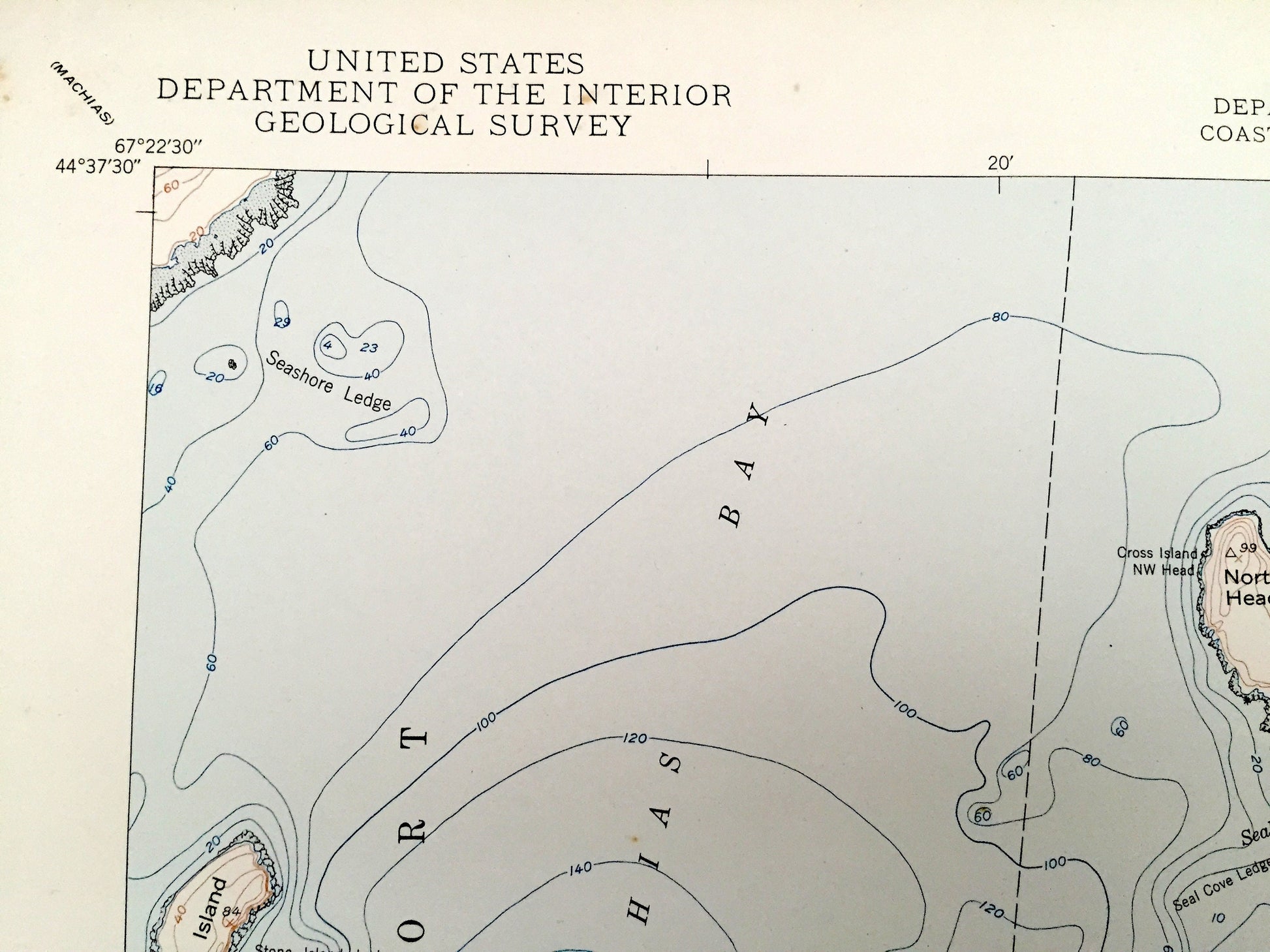 Beautiful, antique map of Cross Island, Maine and surrounding Washington County area. This is an authentic 1950 edition, 1950 print from the U.S. Geological Survey and NOT a computer reproduction.
