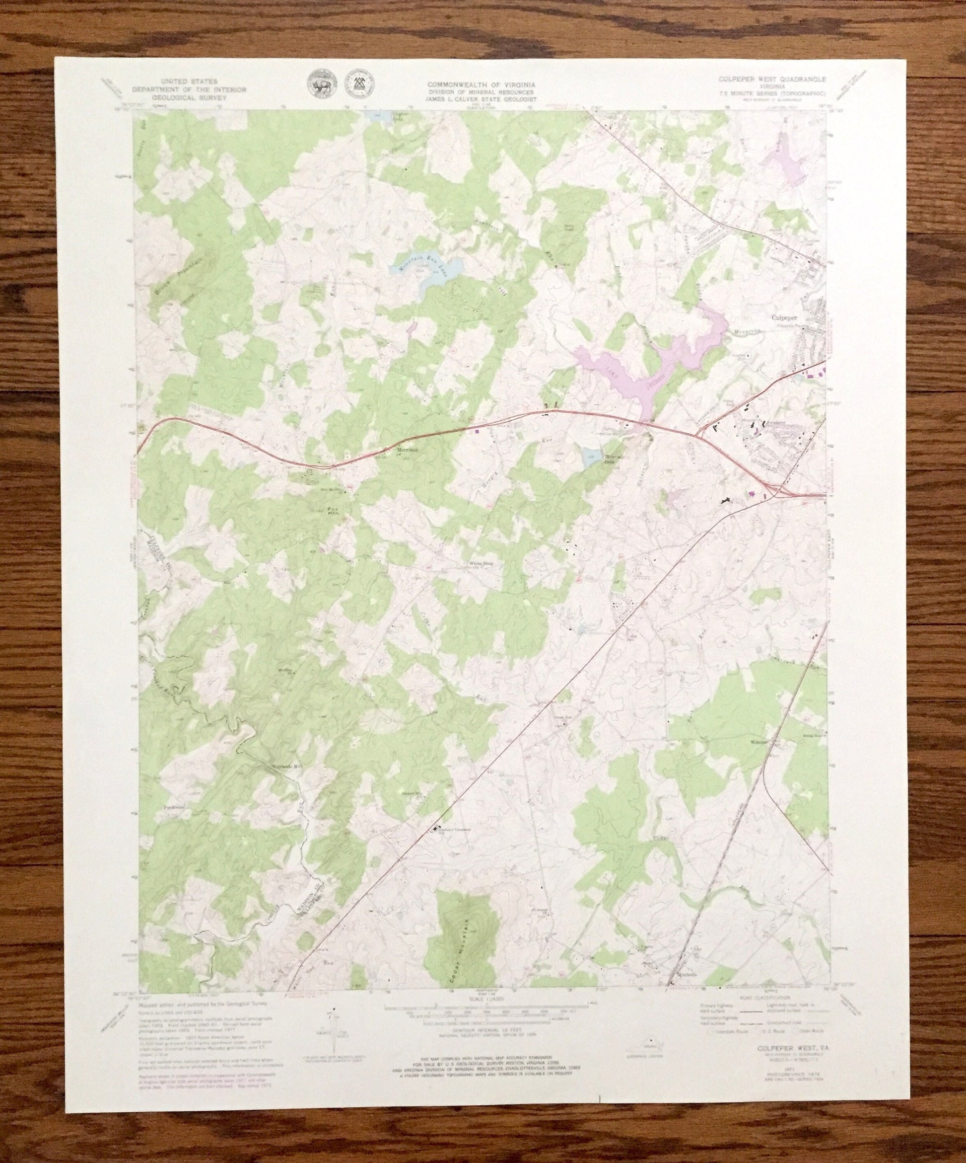 Beautiful, antique map of Culpeper, Virginia and surrounding Culpeper County and Madison County area. This is an authentic 1971 edition, 1979 print from the U.S. Geological Survey and NOT a computer reproduction.