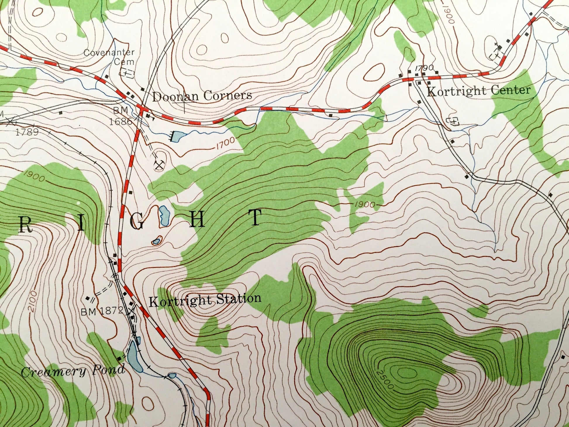 Beautiful, antique map of Davenport, New York and surrounding Delaware County area. This is an authentic 1943 print from the U.S. Geological Survey and NOT a computer reprint.