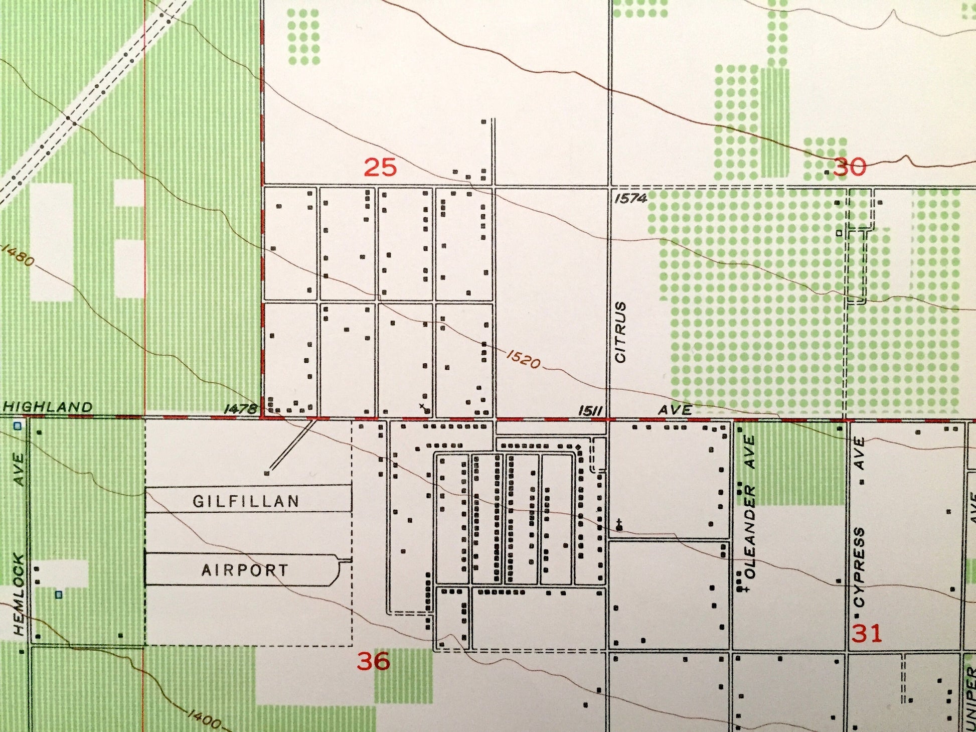 Points of Interest: San Bernardino National Forest, San Gabriel Mountains, San Bernardino Mountains, Tokay Hill, Atchison Topeka Santa Fe Railway, Union Pacific Railroad, Cajon Canyon, Cajon Wash, Glenn Helen Ranch, Verdemont Ranch, Sycamore Flat, Lytle Creek Wash, Lower Lytle Creek Ridge, Lytle Creek Ranger Station, Miller Narrows, Lytle Creek, Hitching Ranch, Turk Point, Meyer Canyon, Penstock Ridge, Texas Hill, Grapevine Canyon, San Sevaine Cow Camp, San Sevaine Canyon, Gilfillan Airport, Miro Fontana Airport, and many more hills, streams, ponds, houses, schools, churches and roads.
