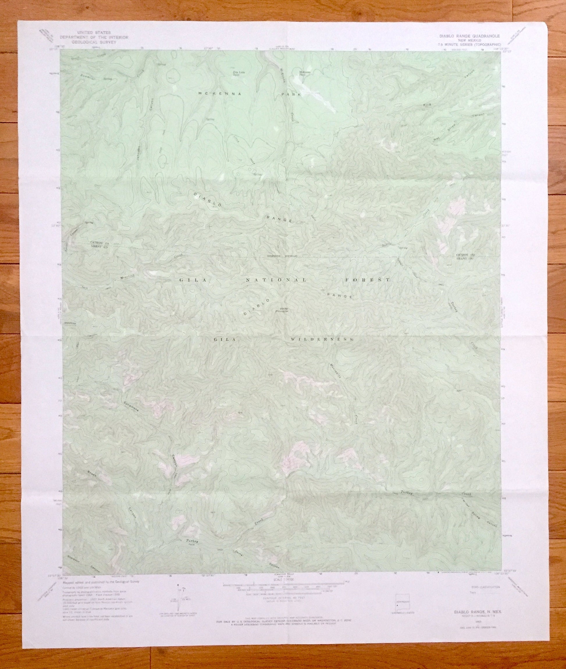 Beautiful, antique map of Diablo Range, New Mexico and surrounding Catron and Grant County area. This is an authentic 1965 print from the U.S. Geological Survey and NOT a computer reproduction.