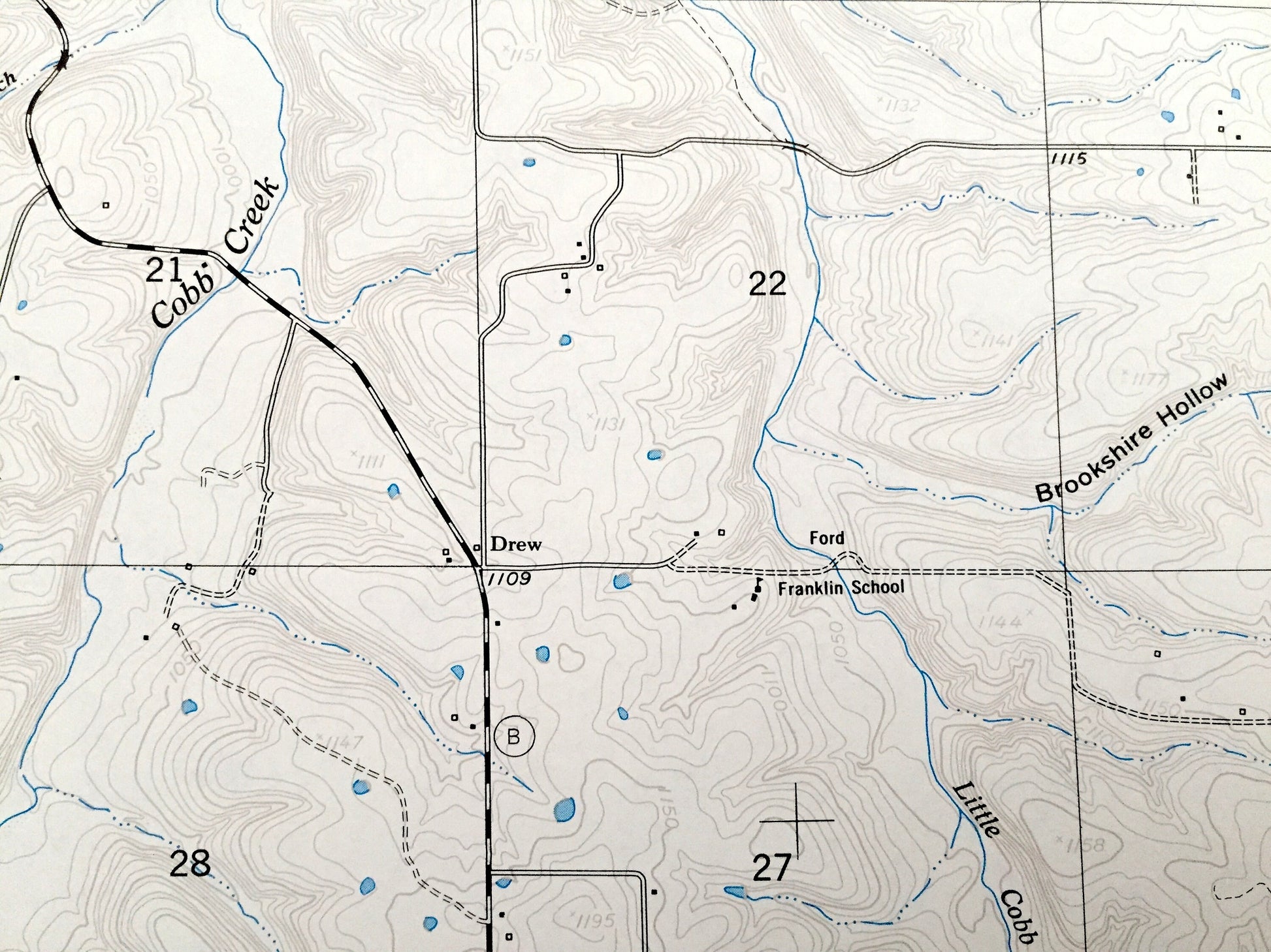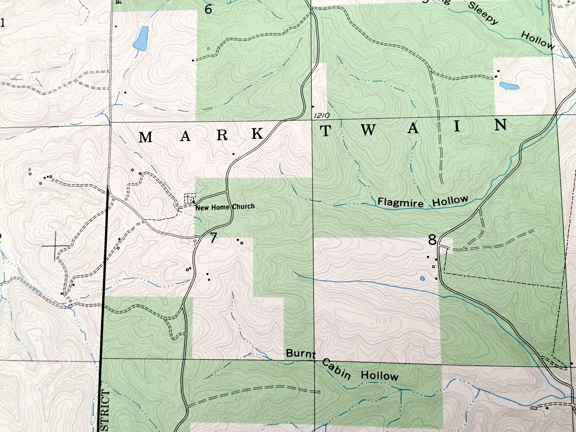 Points of Interest: Mark Twain National Forest, Walker Hollow, Lambeth Bridge, Panther Cave, Brookshire Hollow, Wilcox Hollow, Burnt Cabin Hollow, Flagmire Hollow, Big Sleepy Hollow, Osage Fork, Cobb Creek, Mayfield Spring, Little Cobb Creek, Gasconade Creek, and many more hills, streams, ponds, houses, schools, railroads, churches and roads.