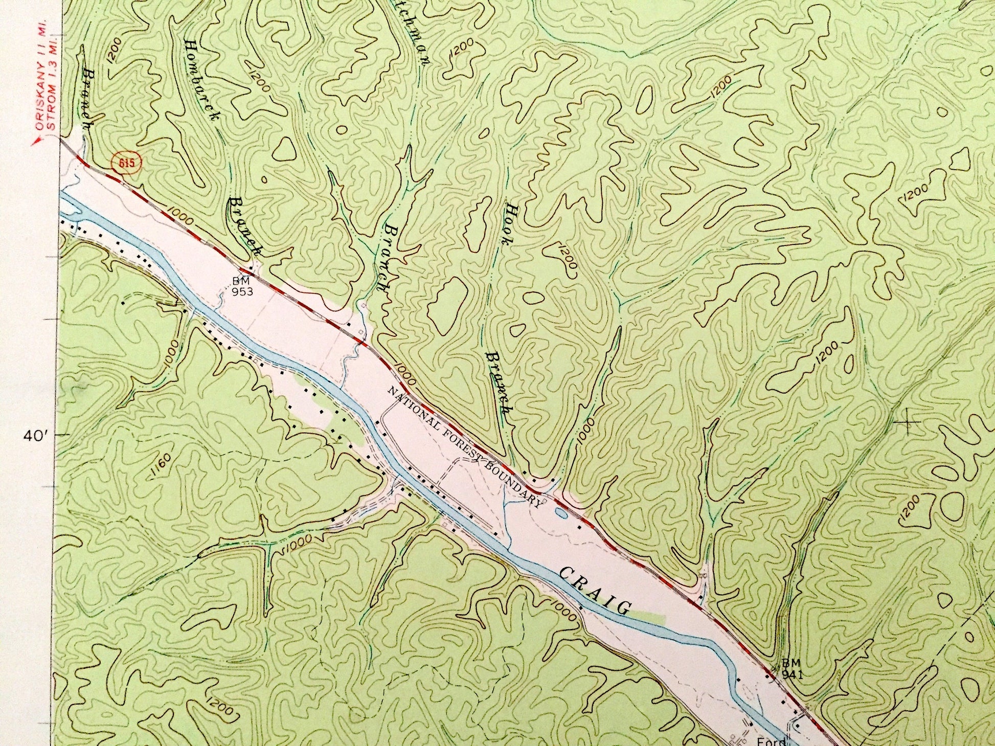 Points of Interest: Alleghany County, Botetourt County, George Washington National Forest, Jefferson National Forest, James River, James Creek, Sinking Creek, Mill Creek, Rich Patch Mountains, Rathole Mountain, Sheets Mountain, Crawford Mountain, Big Creek, Patterson Creek, Allen Creek, and many more creeks, hills, houses and roads.