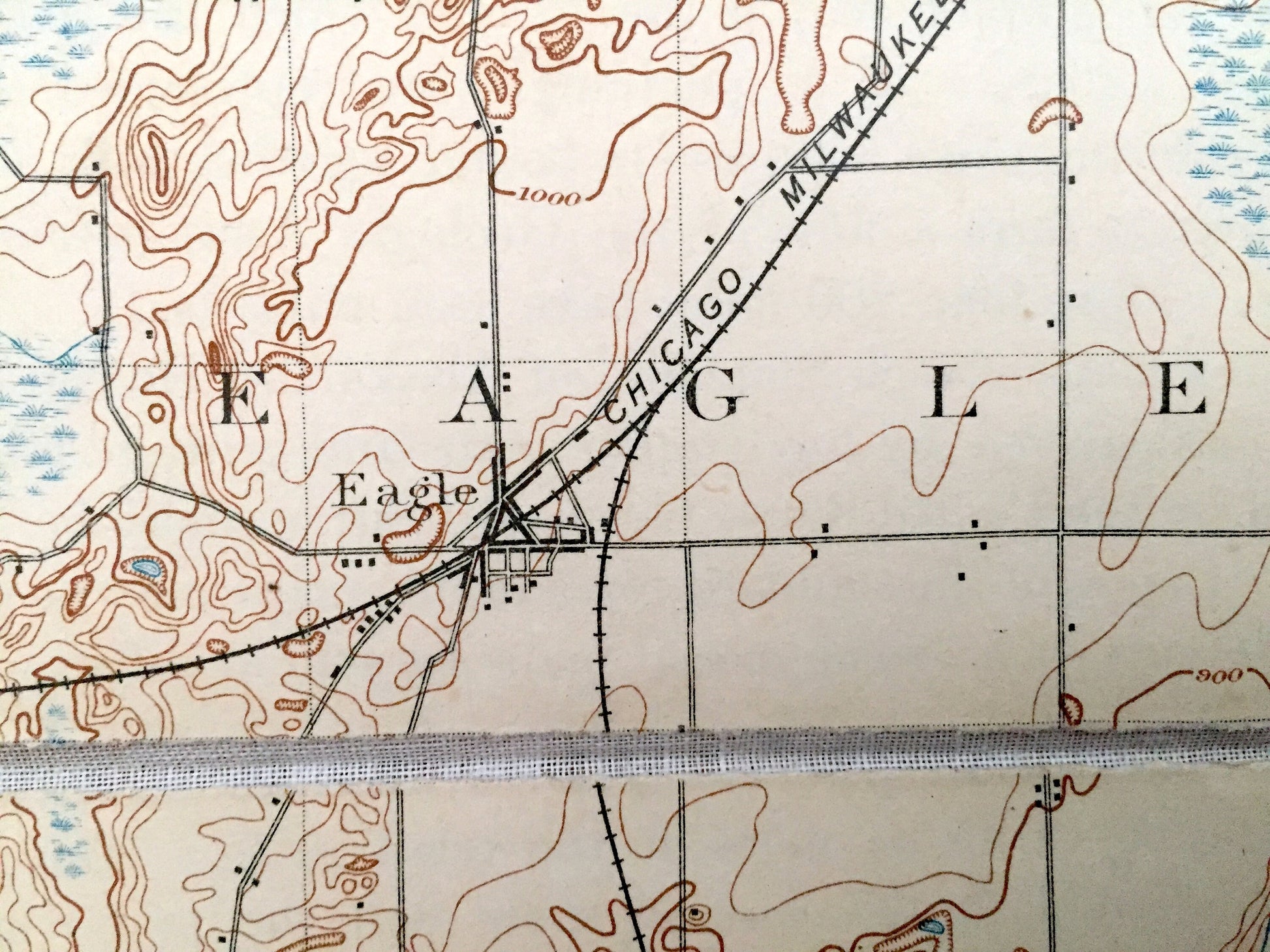 Beautiful, antique map of Eagle, Wisconsin and surrounding Waukesha, Walworth and Racine County areas. This is an authentic 1906 edition, 1928 print from the U.S. Geological Survey and NOT a computer reproduction.