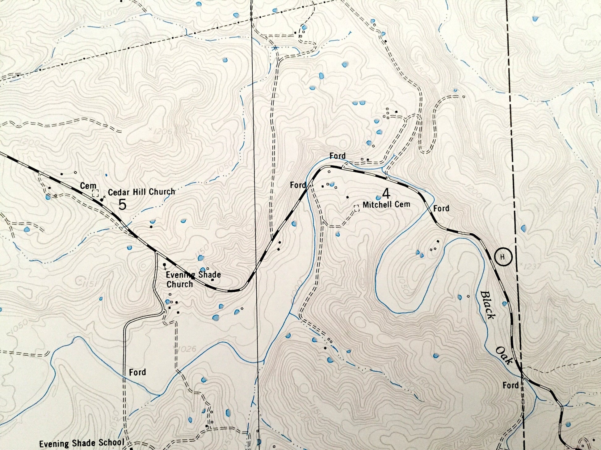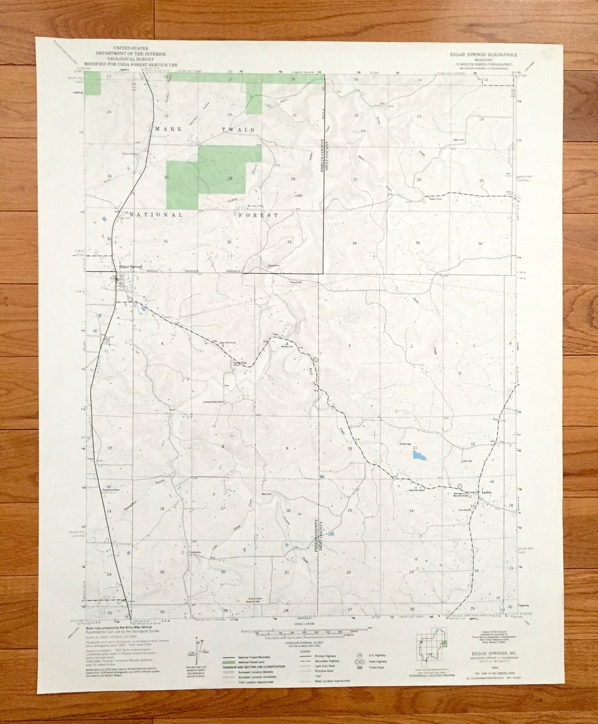 Points of Interest: Mark Twain National Forest, Renaud Cave, Edgar Spring, Solomon Hollow, Everywhere Branch, Little Piney Creek, Sample Creek, Black Oak Creek, Bean Creek, Horse Creek, Jackson Branch, and many more hills, streams, ponds, houses, schools, railroads, churches and roads.