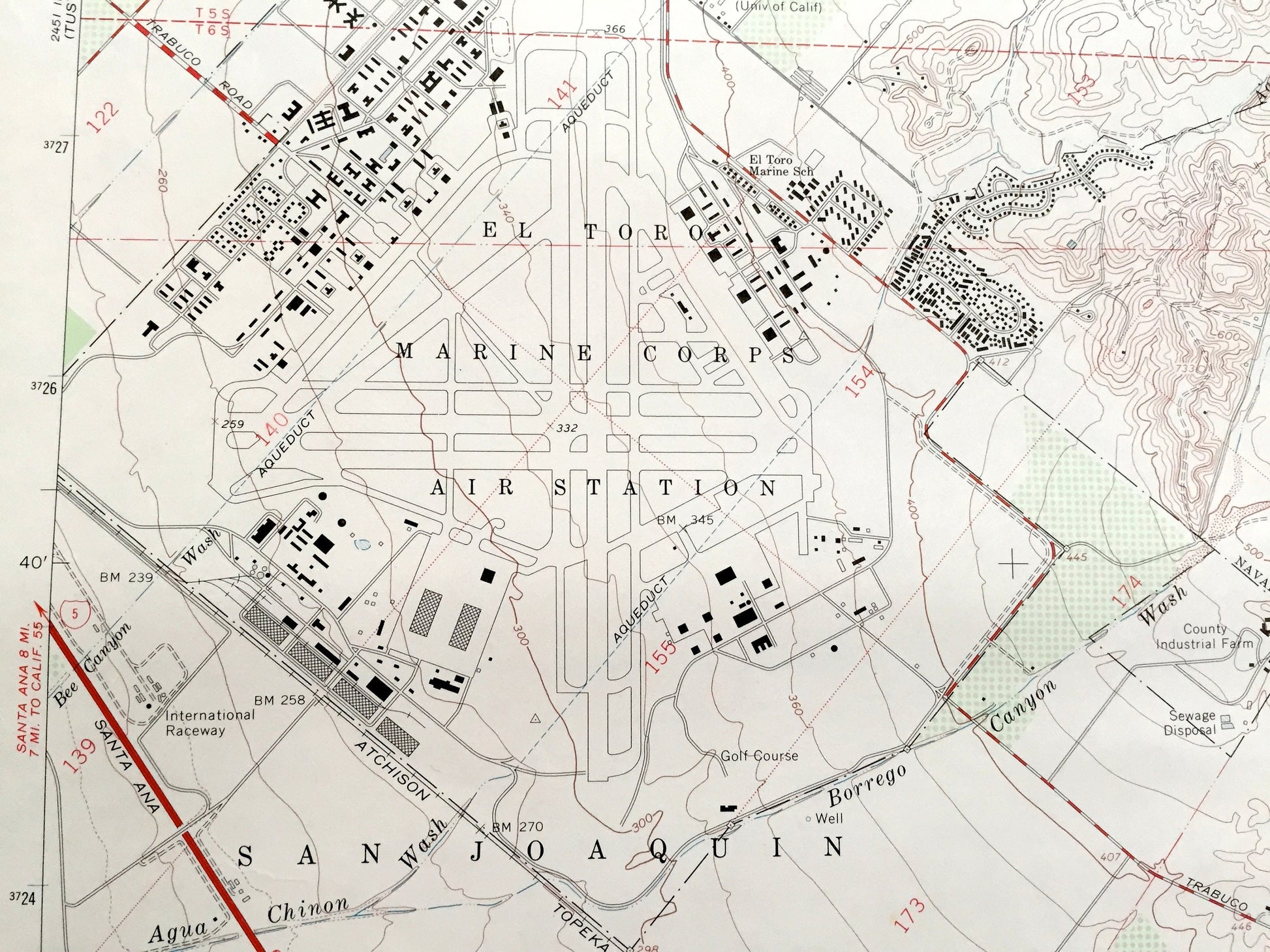 Beautiful, antique map of El Toro, California and surrounding Orange County. This is an authentic 1968 edition, 1970 print from the U.S. Geological Survey and NOT a computer reproduction.