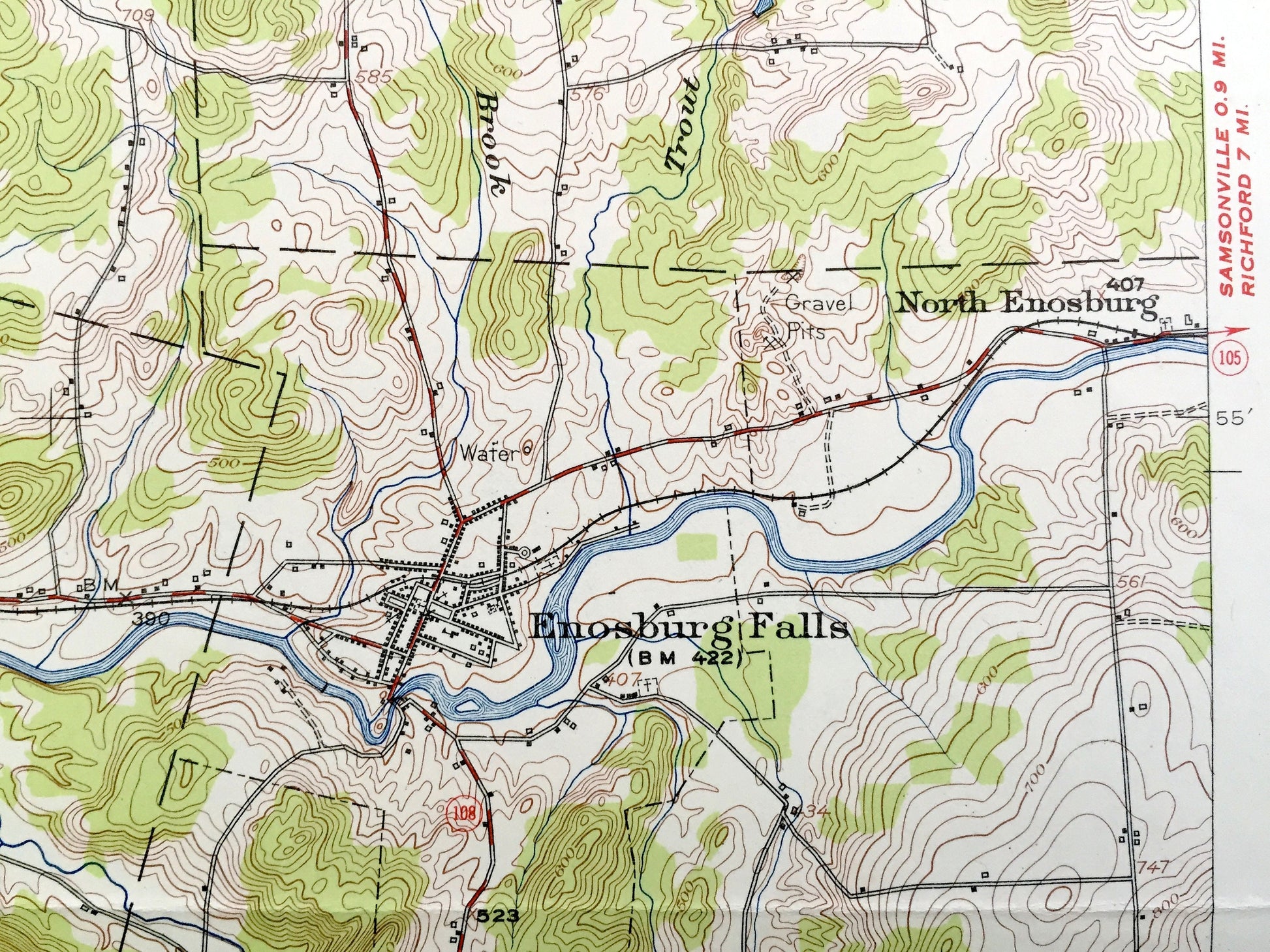See what Enosburg Falls, Sheldon Springs and Lake Carmi looked like 70 years ago. Lots of intricate details and geological contours. Map even has little squares for every house that existed at the time. The cartographers were very thorough back then!